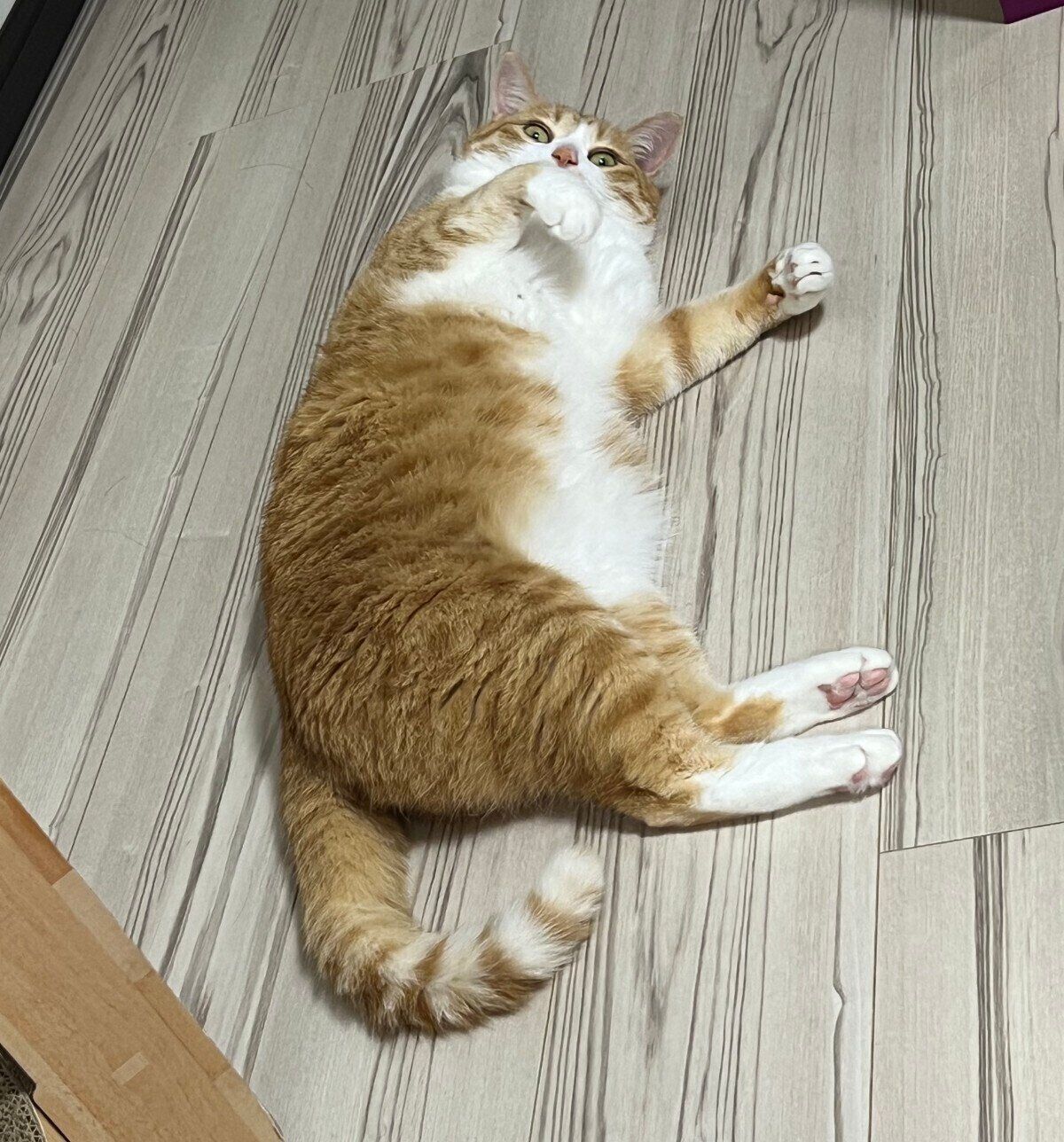 甘えたくて床に転がったクウちゃんがとったしぐさに「わかります!」「もっと見たい」「策士すぎます(笑)」「猫の術中に…」と多くの人が次々にとりこになりました。