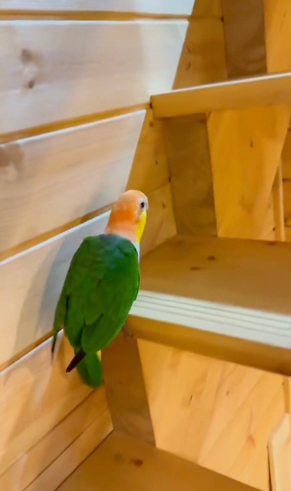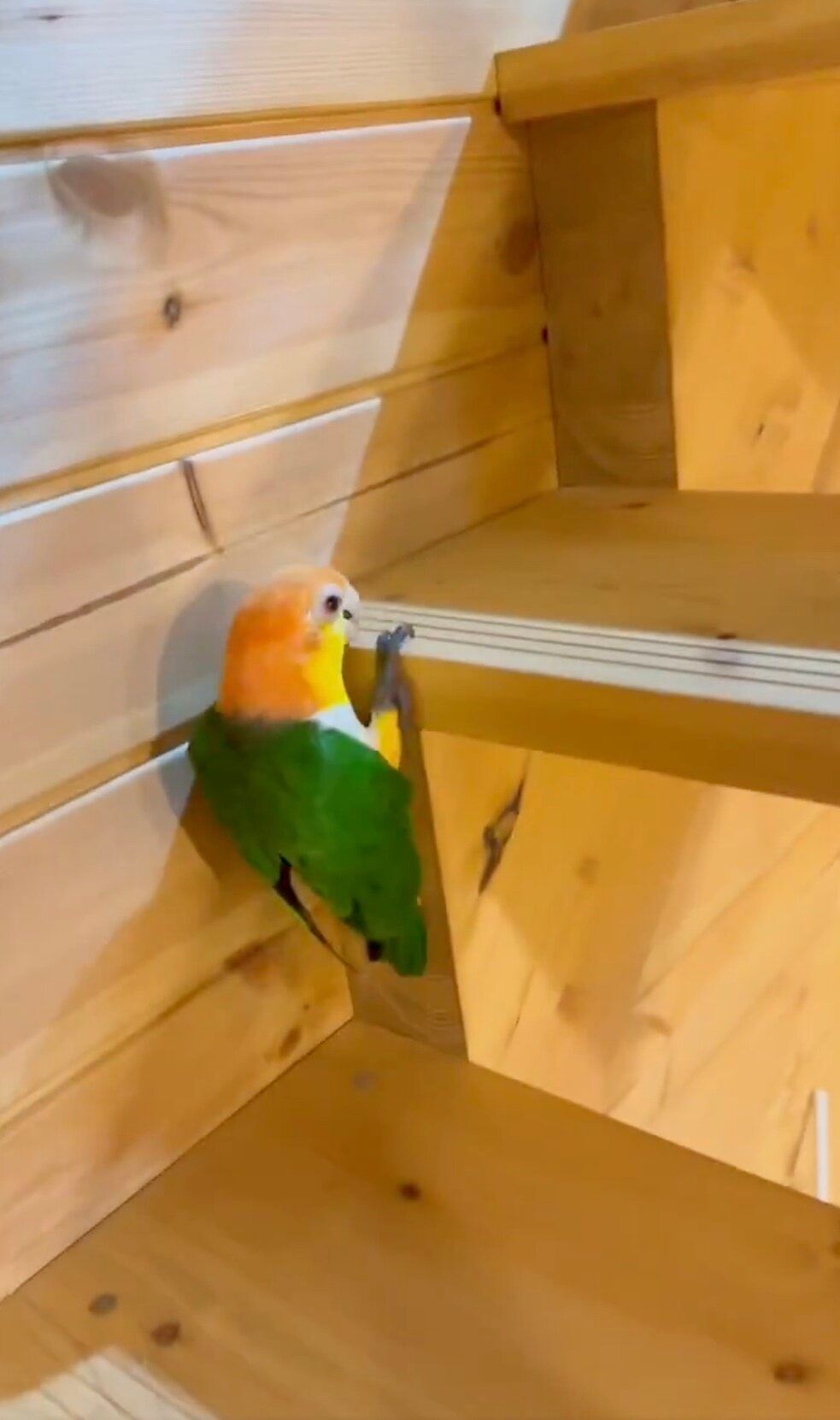 投稿したのは、シロハラインコのレオちゃんが階段を上るときの動画。