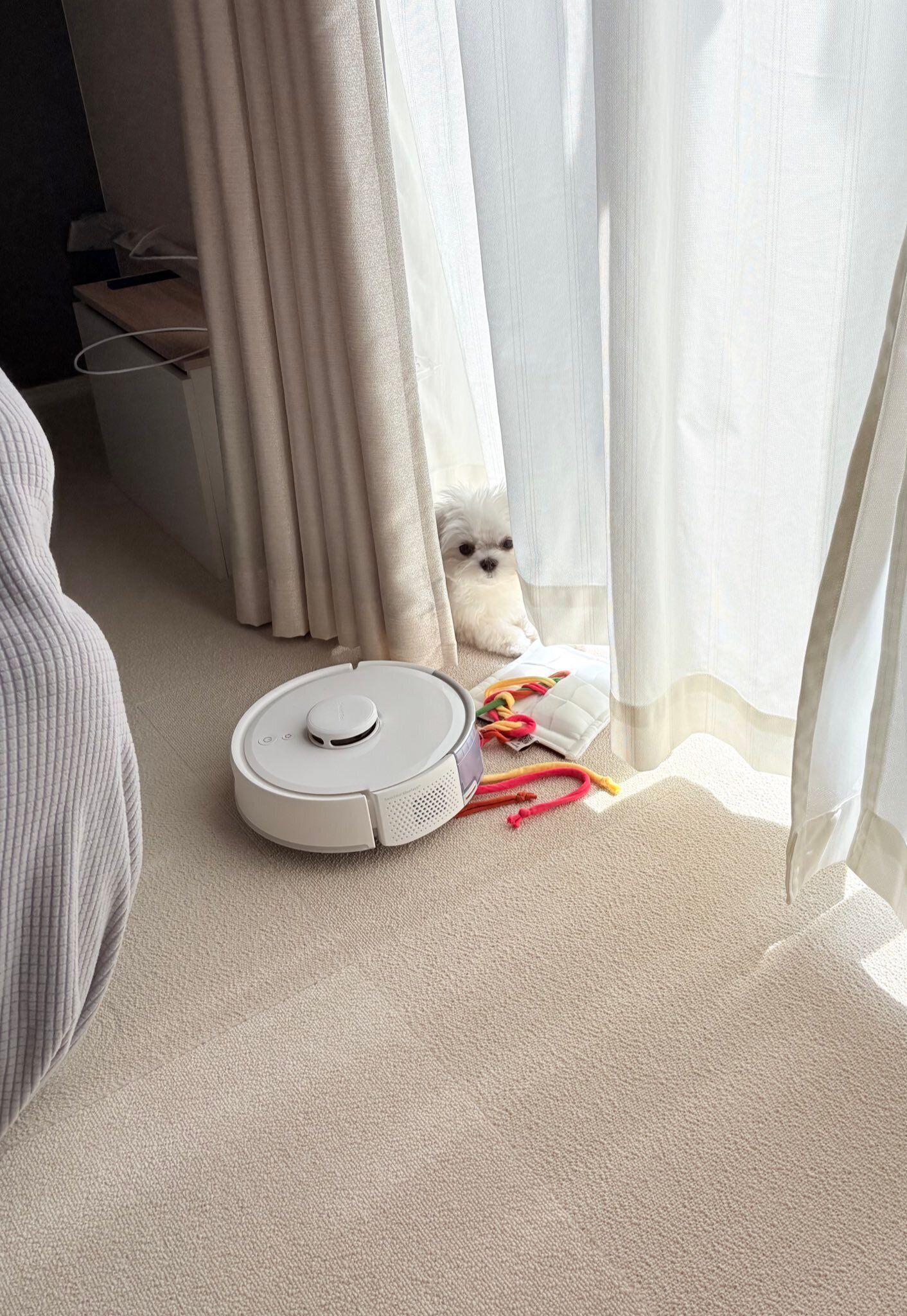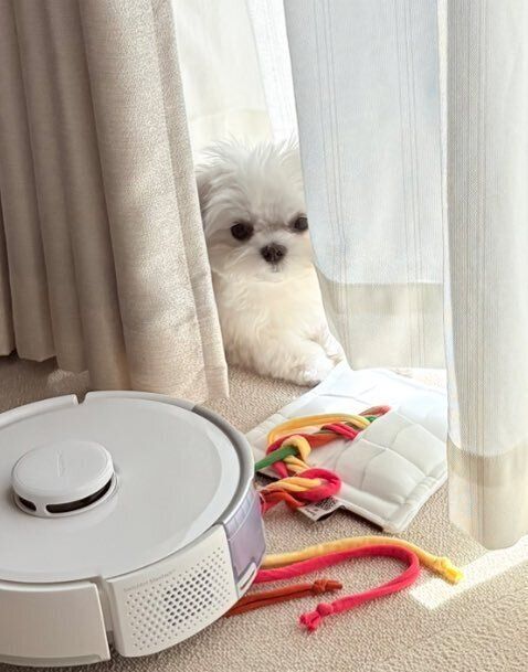 • ロボット掃除機を友だちのように感じているのは、マルチーズのライスくん。