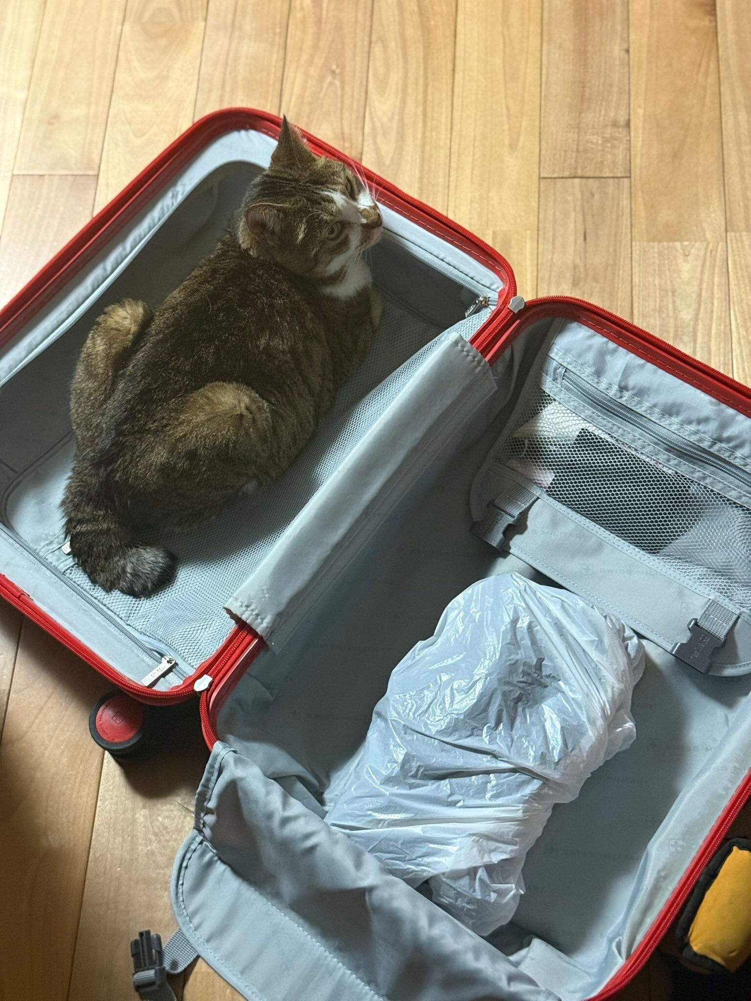 むぎちゃんは、どのような流れでスーツケースに収まったのでしょうか。