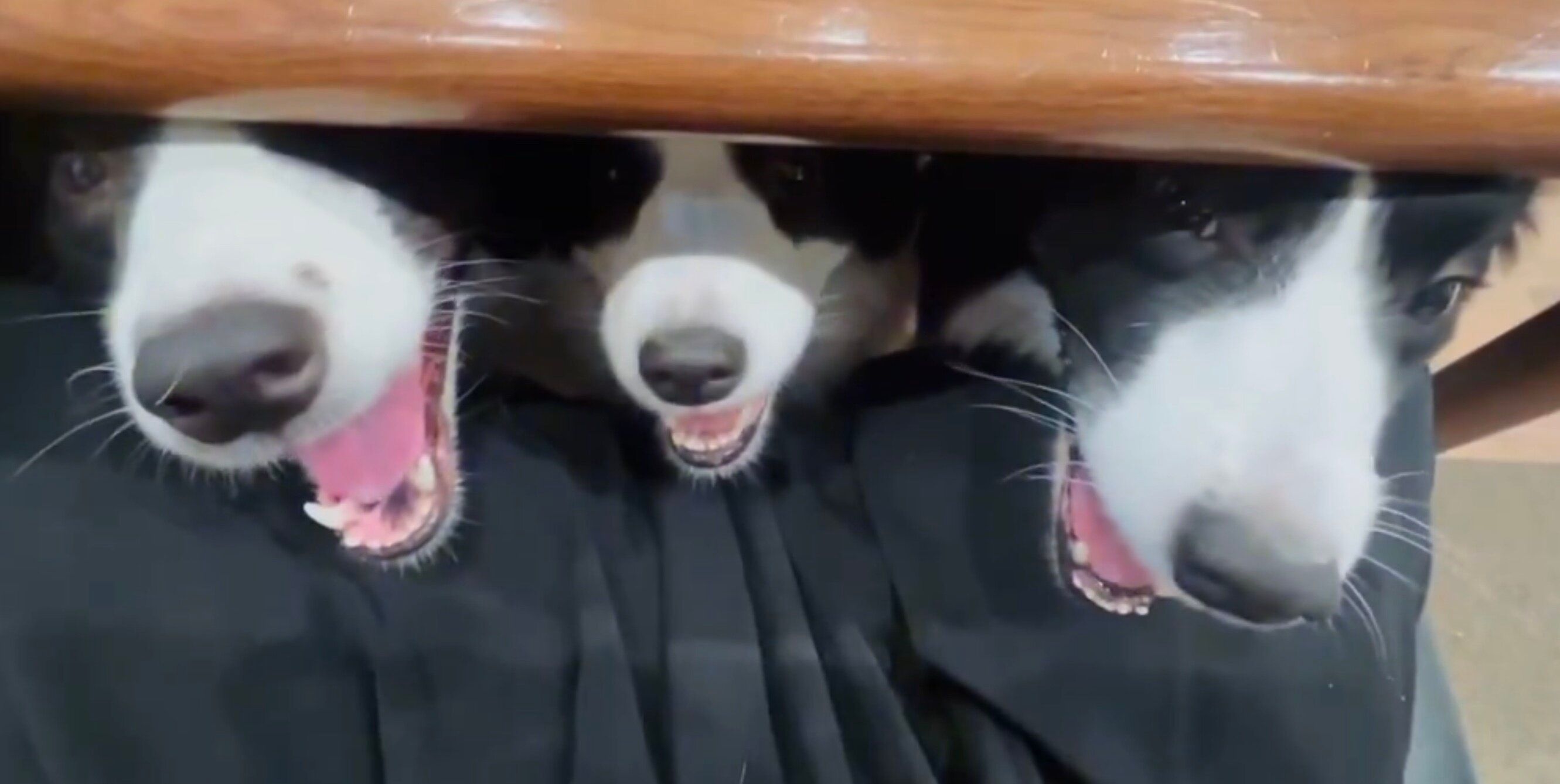 3匹のボーダーコリーと暮らすチロルさん(@chiroru_border)の投稿に、多くの注目が集まっています。投稿したのは、「なんか生温かい風が来る」と投稿した動画。机の下から飼い主さんをのぞき込むわんこたちに、3万いいねが集まりました。