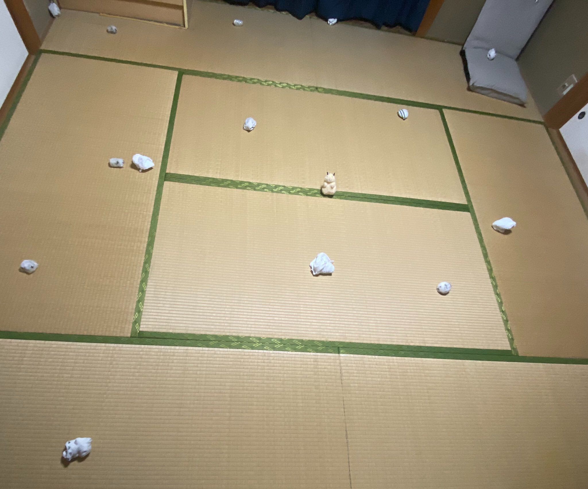 べーーやんさん(@hamuhamustar924)が投稿したのは、以前ハムスターを飼っていた頃のエピソードです。ハムスターを飼育していた和室では「本物のハムスターを探せ!」を定期開催していたそう。難しいクイズに、多くの挑戦者が集まりました。
