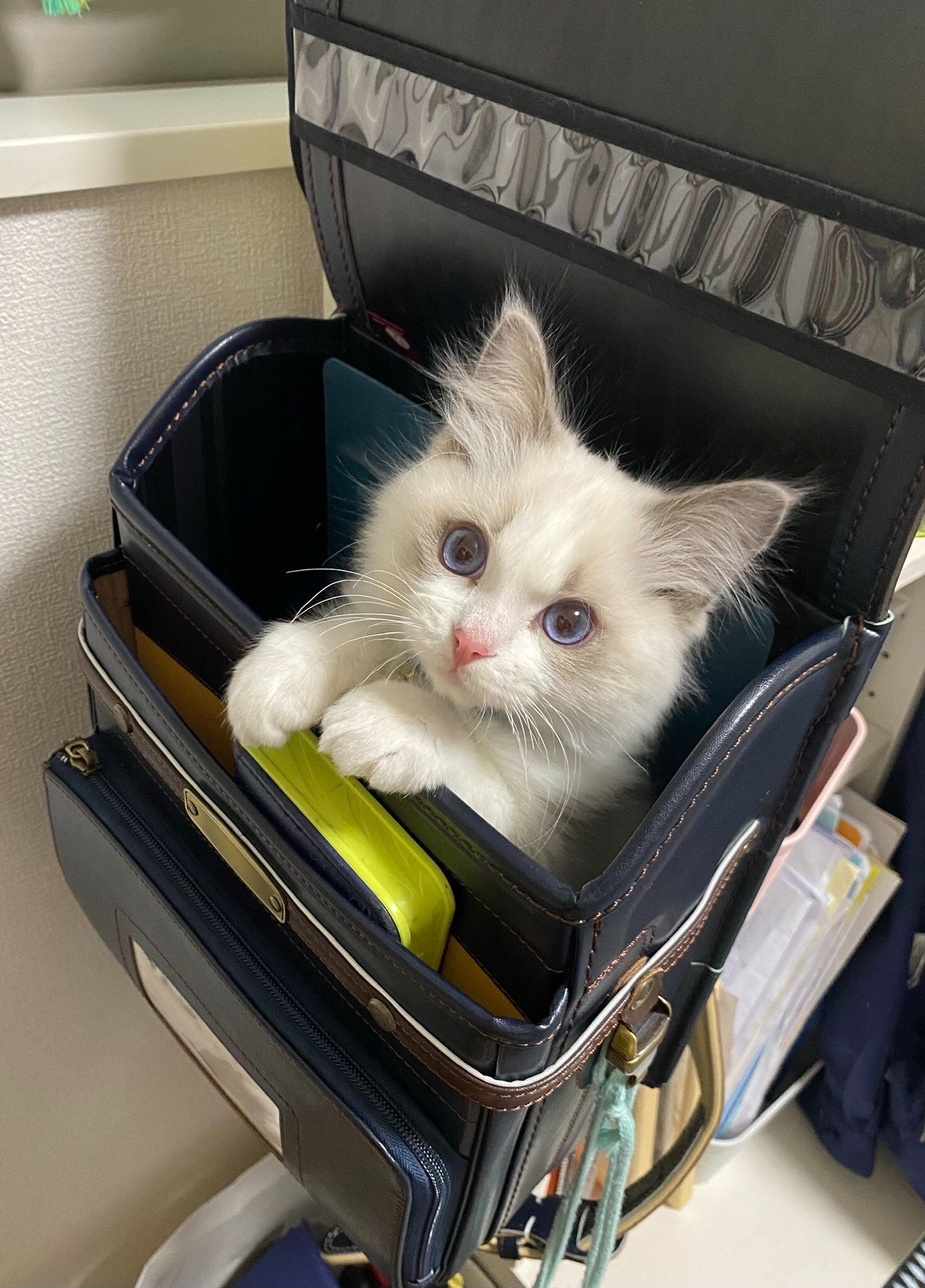 ルカくんにとってランドセルの中はきっと居心地がいいのですね!