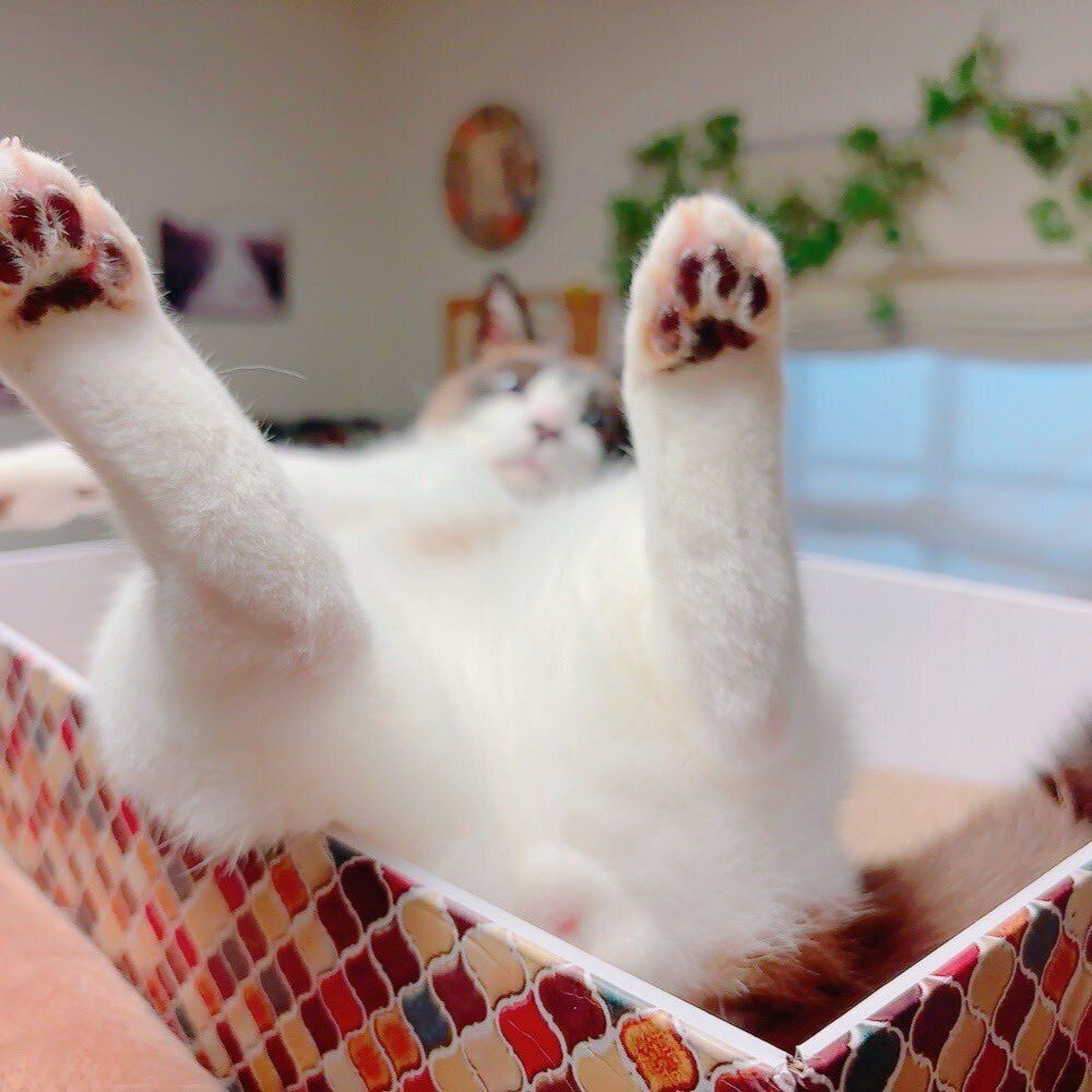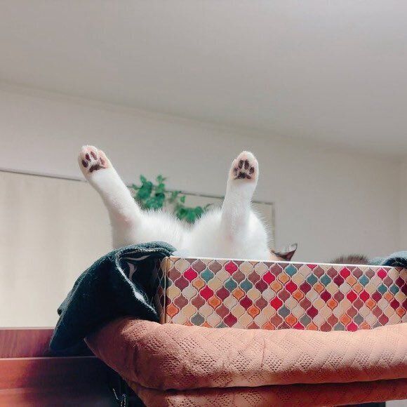 「箱の中でいつもひっくり返って寝ているので、このときもそうだったと思います。同じ日ではありませんが、こんな感じです」