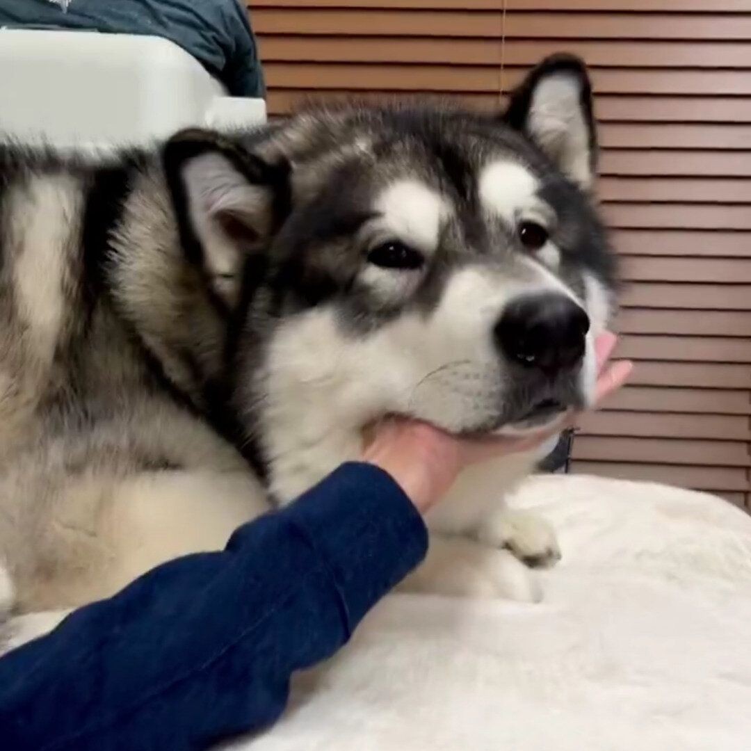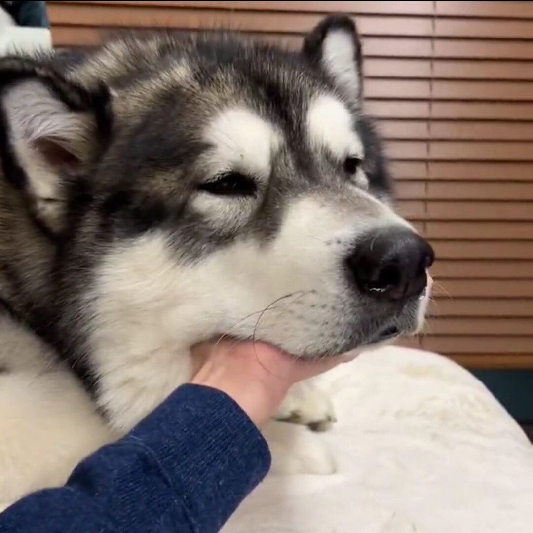 アラスカンマラミュートのアルさん(@ara_aru6)が投稿した動画に2.4万件のいいねが集まっています。手のひらをアルくんのアゴの下に置いていた飼い主さん。上に下にと動かしますが、されるがままのアルくんが「かわいすぎる」と注目されました。