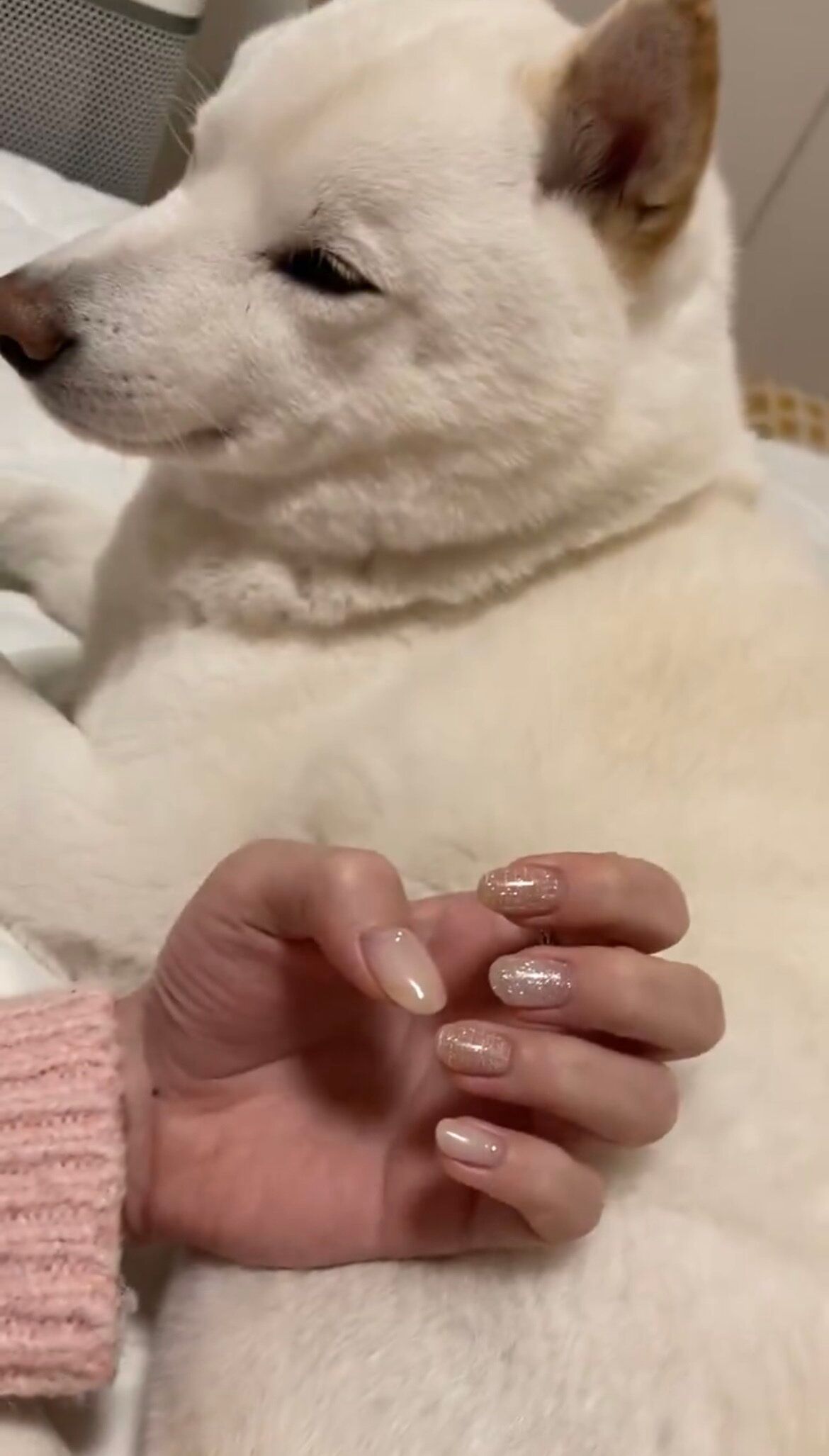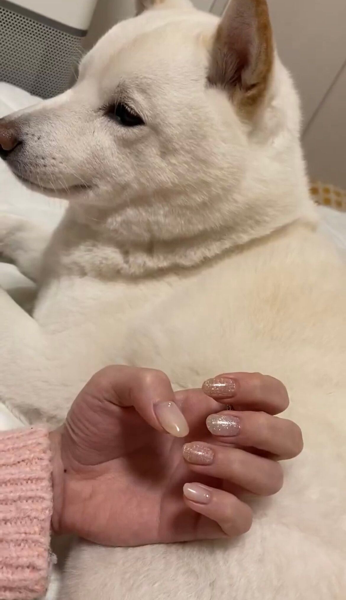「ネイルの写真撮るのにちょうどいい犬」というコメントとともに投稿された動画がこちら。