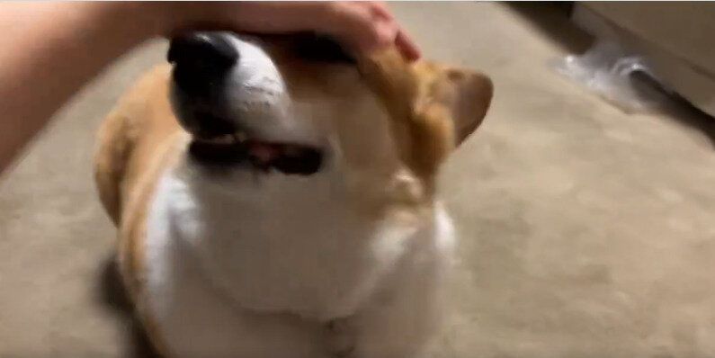 「エアーナデナデするとなでられにくるかわいい犬」というコメントが添えられた今回の投稿。そこには、空中で手を振る飼い主さんの手と、床に寝そべるはなちゃんの姿が映っていました。