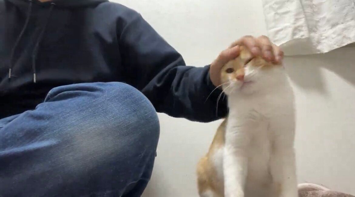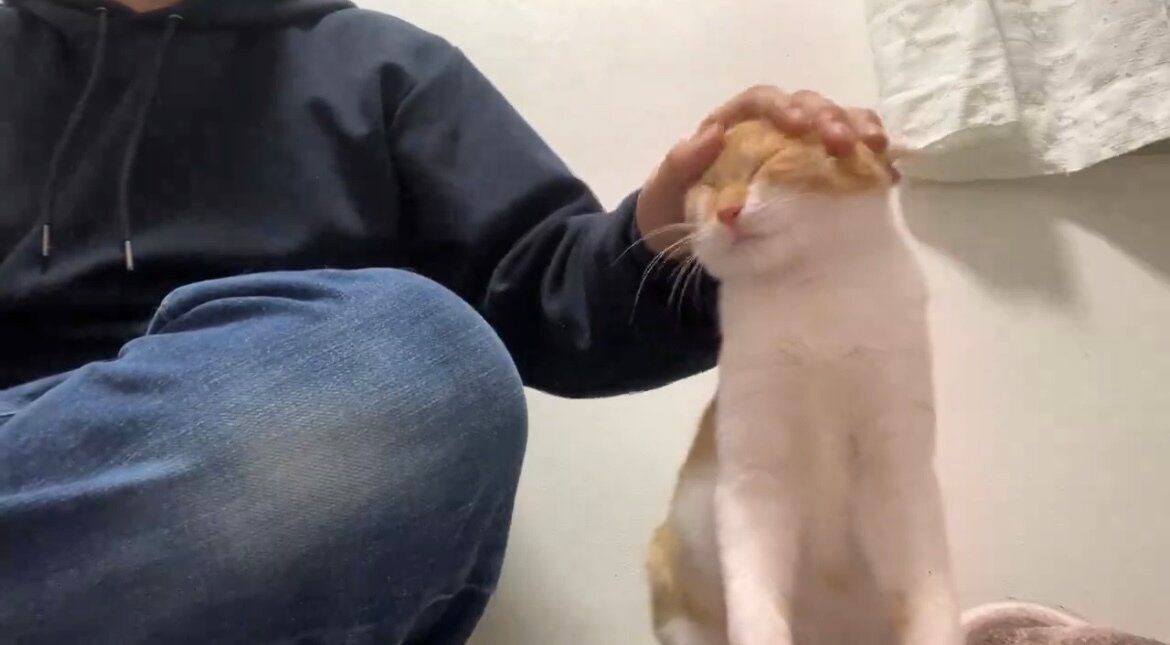 ねこかますさんに頭を撫でられてとてもうれしそうです。