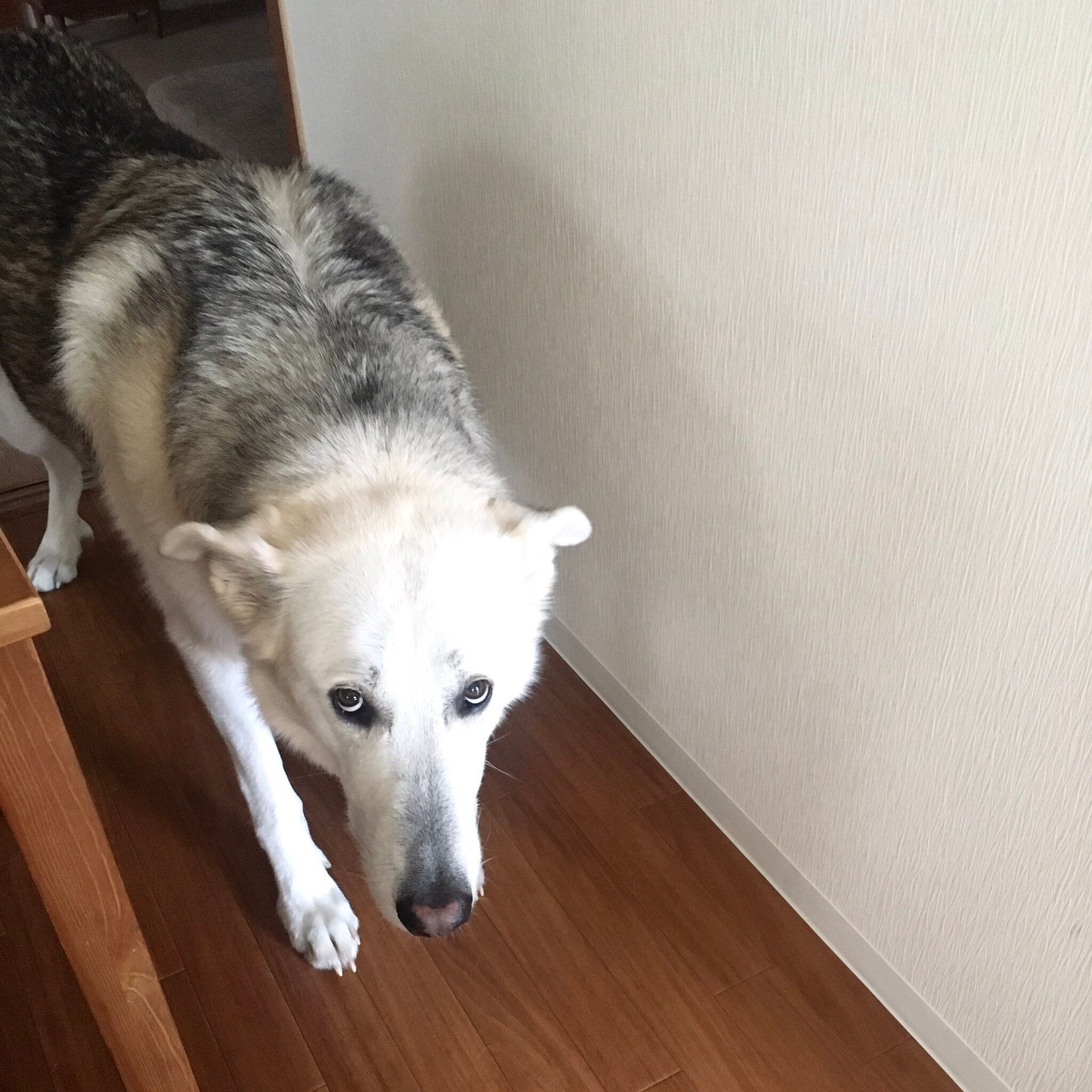 階段下に降りてきても、上目遣いでしょんぼり顔のサンくん。落ち込んでいる様子が痛いほど伝わってきます。
