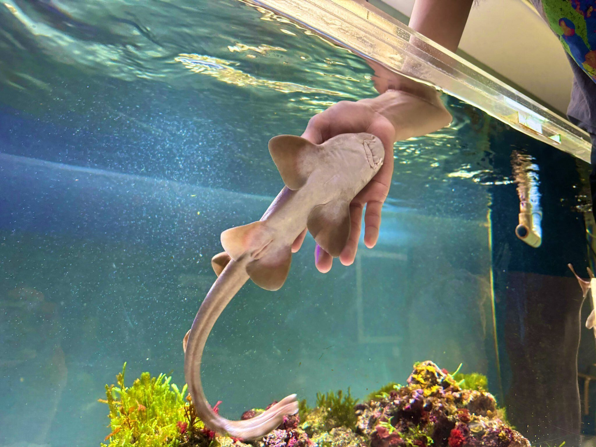 「サメが近寄ってきた隙に、軽く撫でたりおなかやほっぺをぷにぷにしたりしています(笑)」