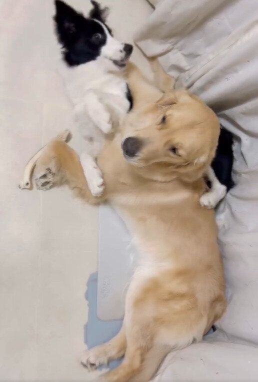 飼い主さんが「やんちゃ盛りのボーダーコリーがゴールデンレトリバーにガッチリ捕獲されていた」というコメントを添えて投稿すると、「おとなしくしなさいって言われているみたい」「警察官みたいな取り押さえ方」というコメントが届き、Xで84.6万回も再生されるほど話題になりました。