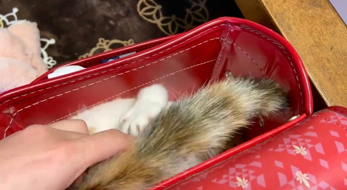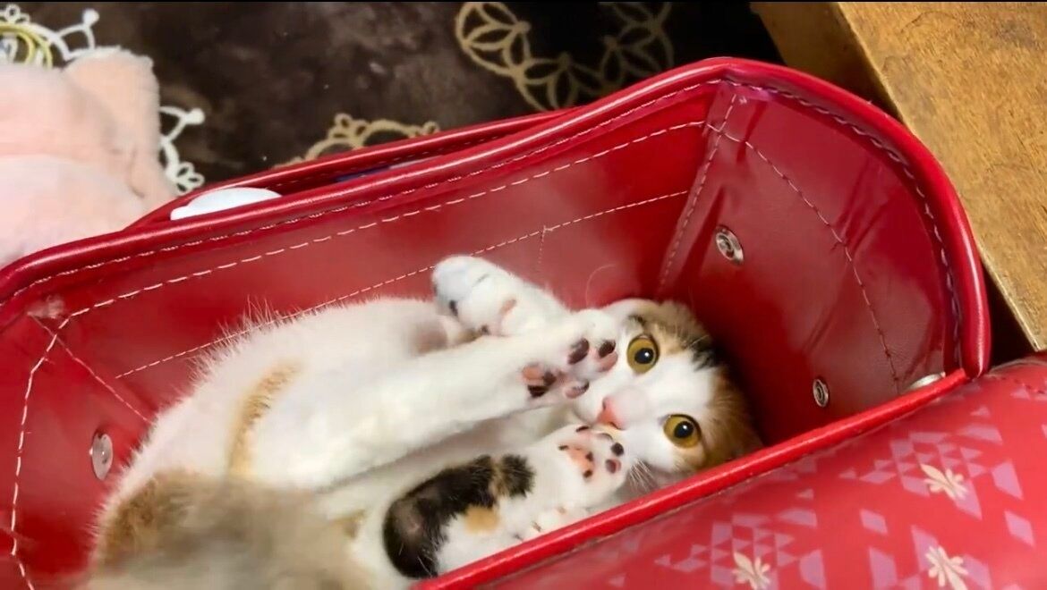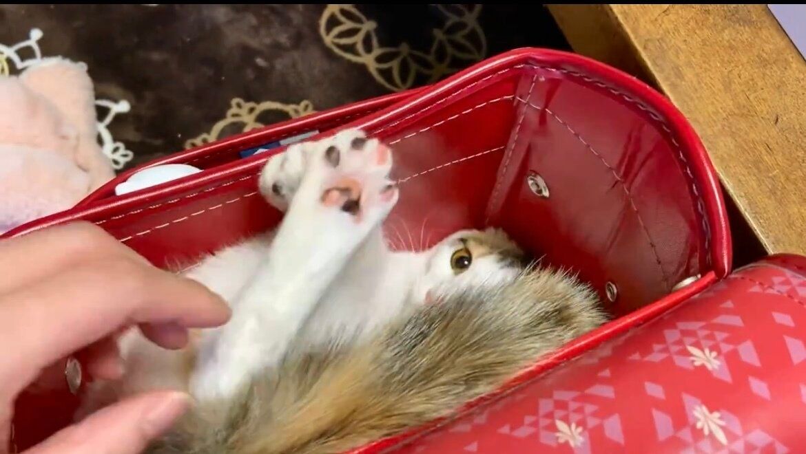 今回ご紹介するのは、おこげちゃんがオカアヤンさんの娘のランドセルに入りこむ動画です。