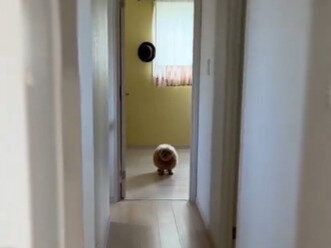 動画冒頭、開かれたドアの奥から目線の先にいる飼い主さんを見ているしえるちゃん。しえるちゃんと飼い主さんは、おそらく目が合っていることでしょう。