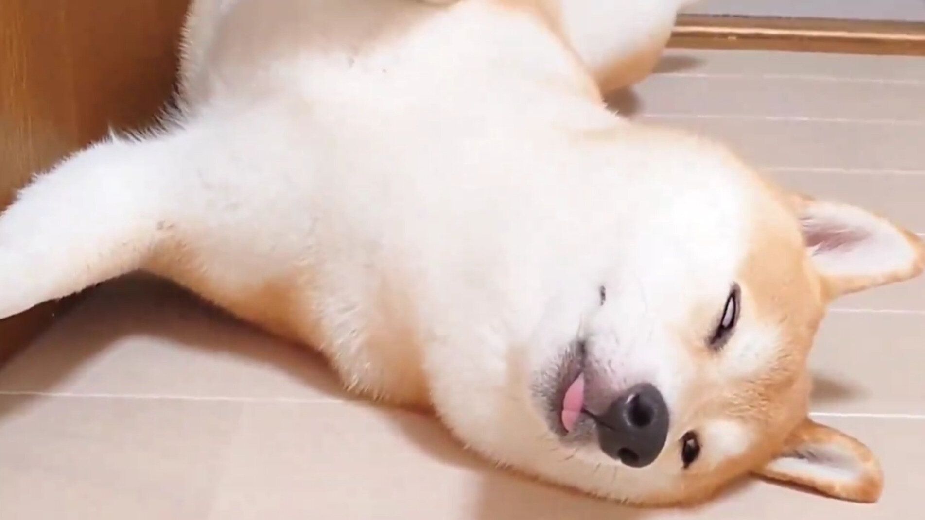 投稿を見た人たちからは、「寝方、白目、ちょっと舌が出てる。100点満点」「柴ストッパーって名前で売りましょう」「かわいいドアストッパー(笑)」といった声が寄せられました。