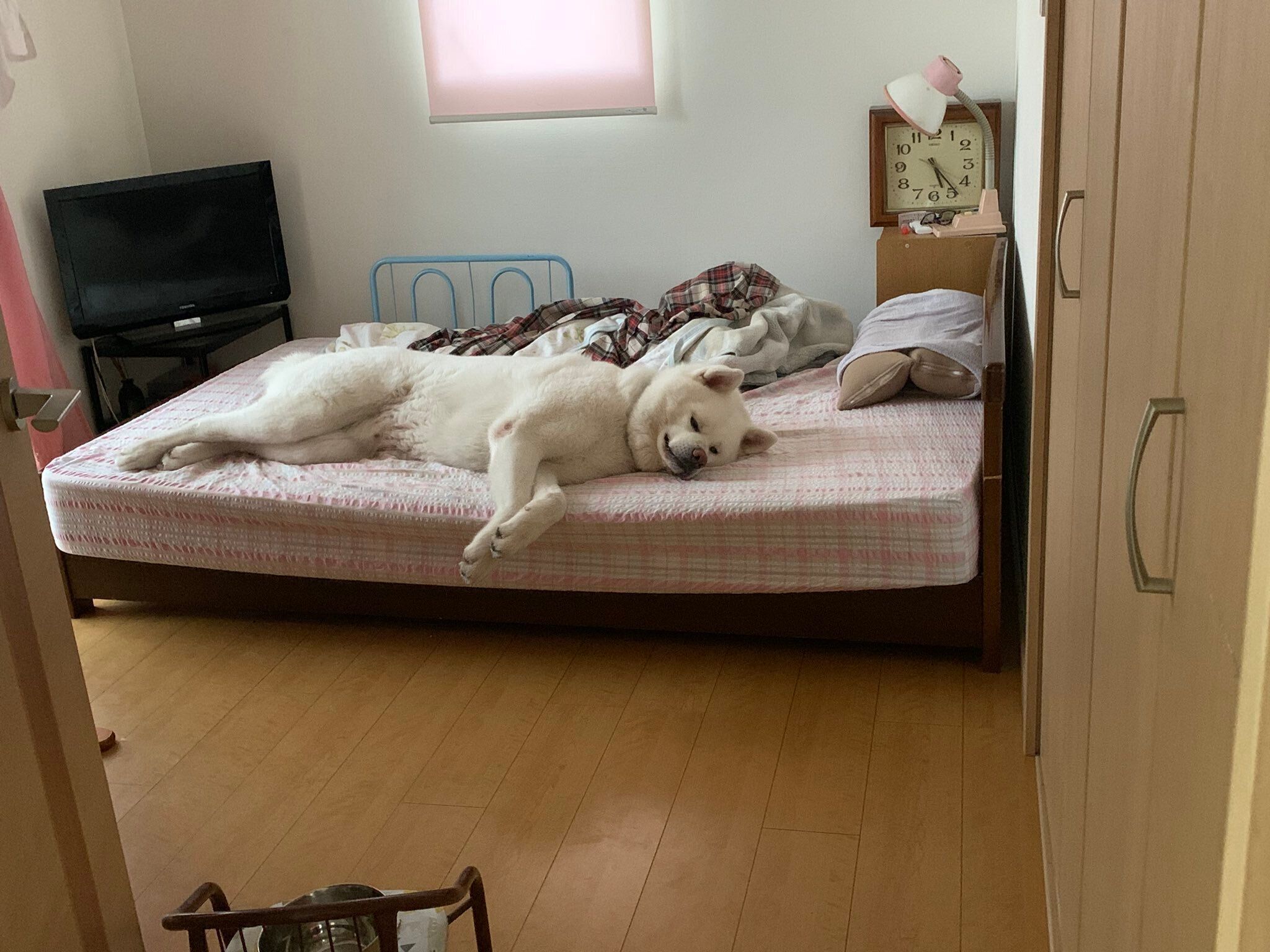 特定の場所はなく、毎日好きな場所を選んで寝ているという白岳くん。この日の白岳くんは、飼い主さんのベッドからぬくもりや安心感を得ていたのかもしれません。