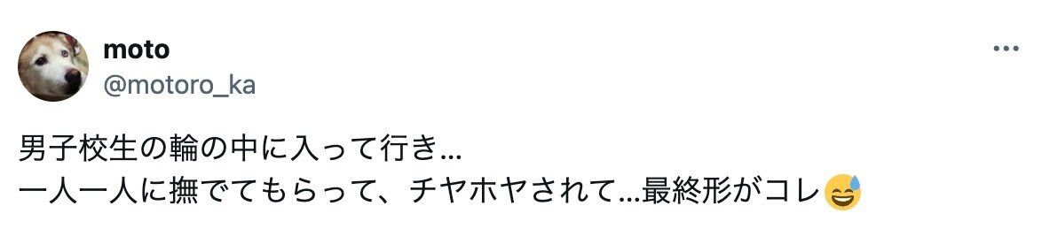 なんと、その場にいた男子校生に自らなでてもらいに行ったのだそう。