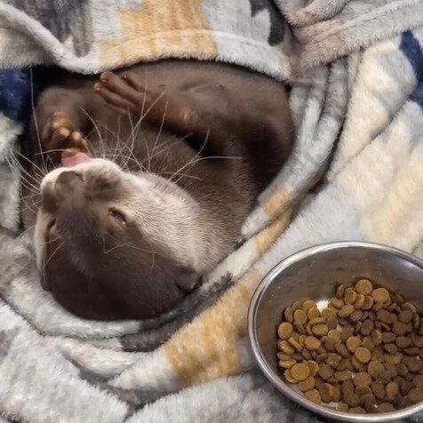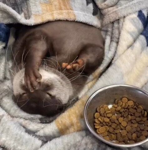 「うちのお父さんにそっくり」布団にくるまって寝転がる“ずぼら”なカワウソの動画にかわいいの声