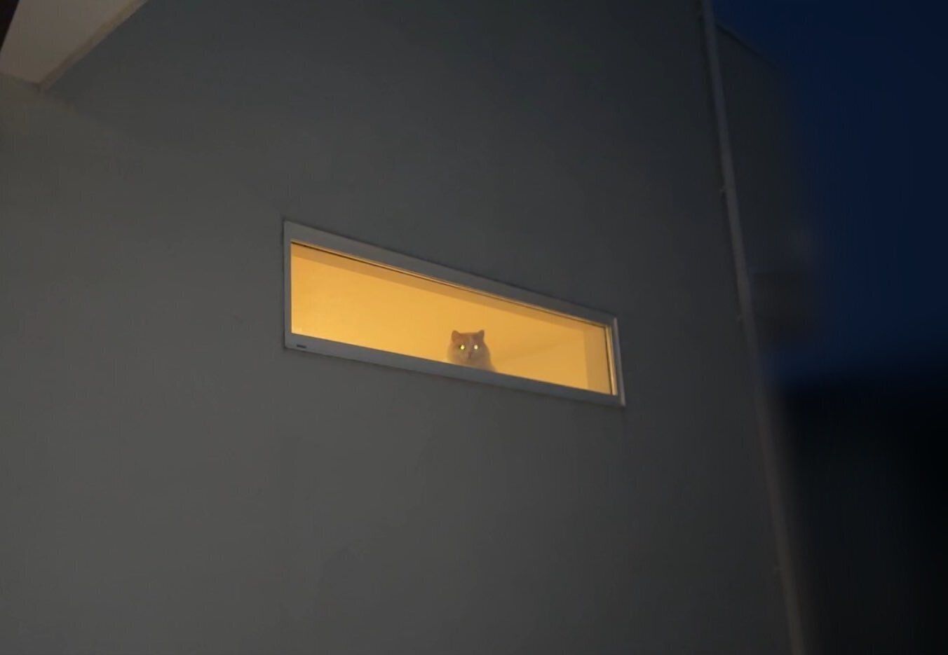 ある夜、飼い主さんが帰宅すると、窓から外を覗く愛猫アポロくんの姿が見えたのだそう。