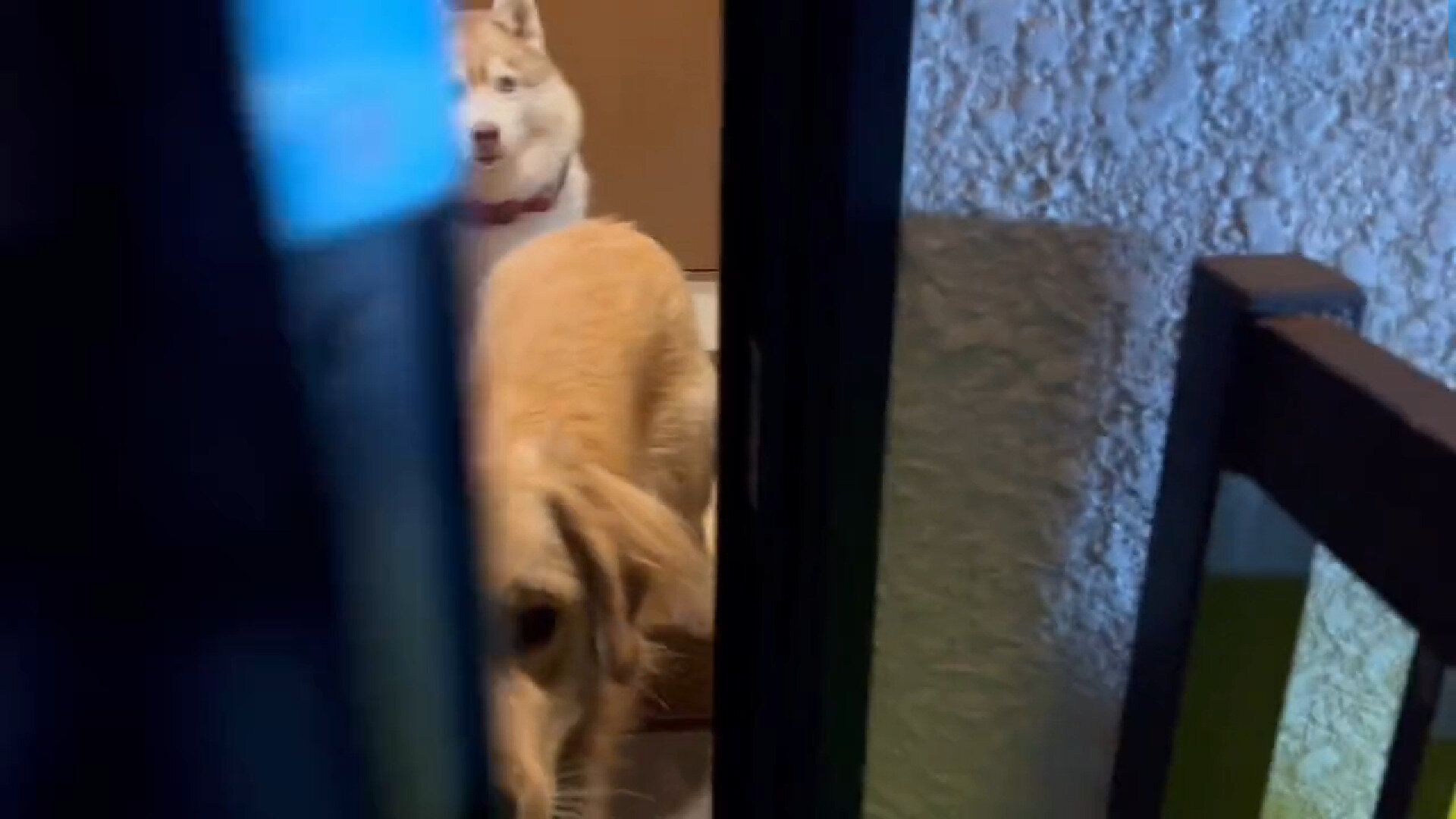 ゴミ捨てからもどって玄関を開けるとワンちゃんたちがお出迎え!しかし3頭が本当に待っていたのは違う人!?