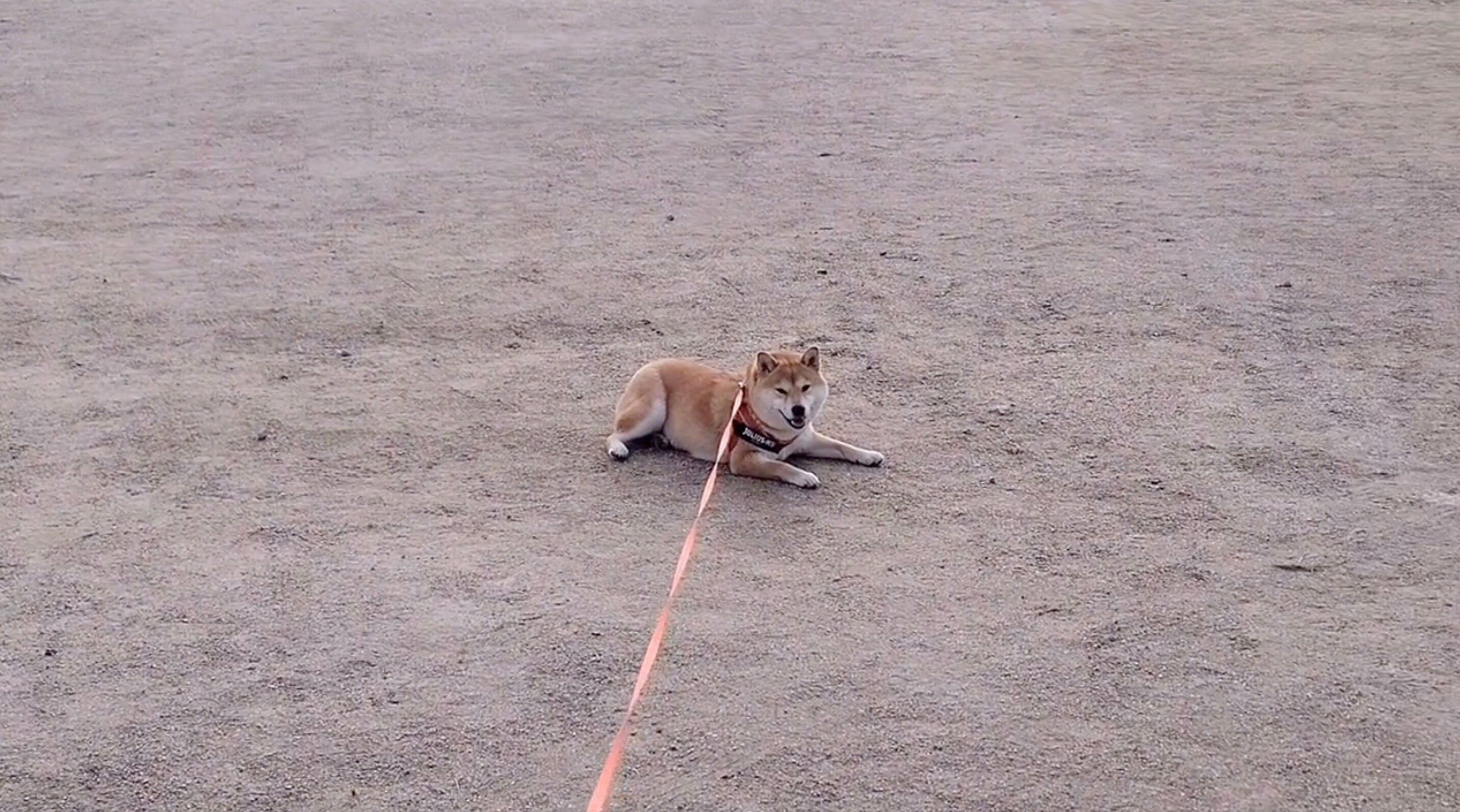 わらびちゃんはおなかを地面に着けて、伏せてしまっています。