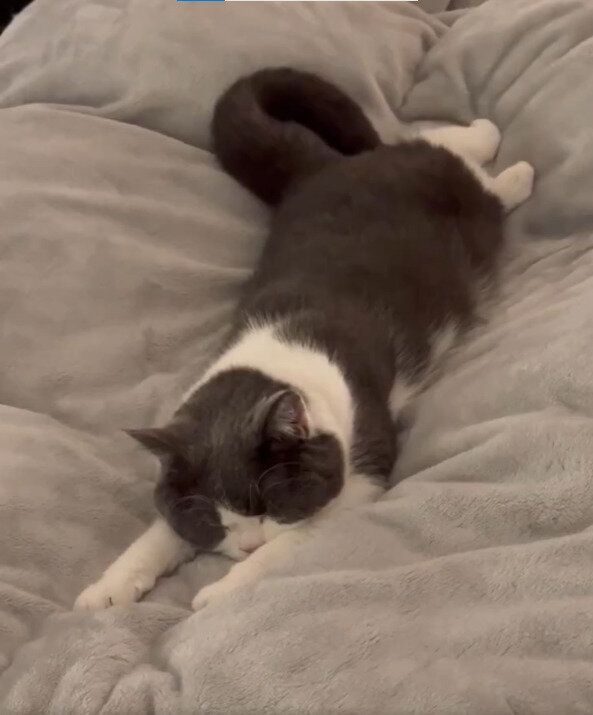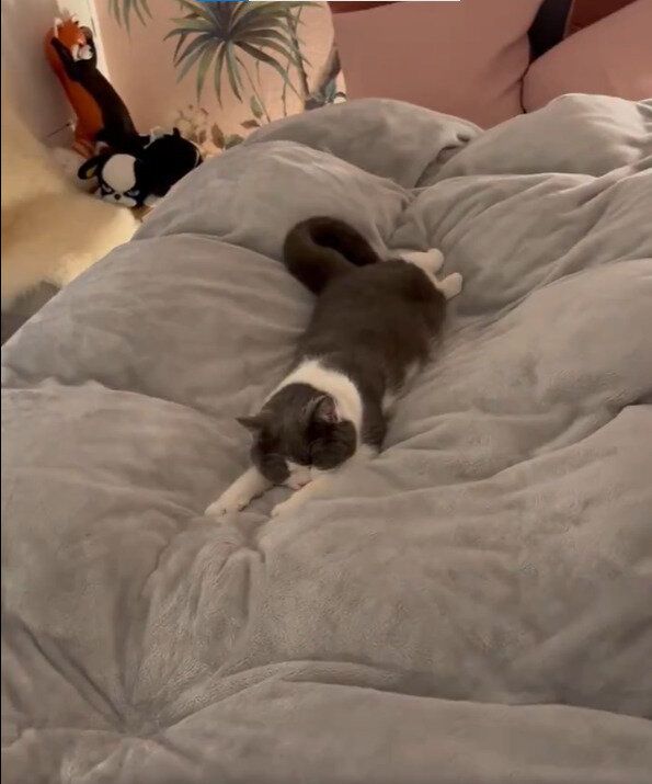 「おもちちゃん全身でふかふか布団満喫してる」「気持ちよさそうですね、幸せおもちちゃん」「お空飛んでる夢でも見てるのかにゃ」など、投稿にはおもちちゃんのかわいさに癒やされた人たちから、コメントが寄せられました。