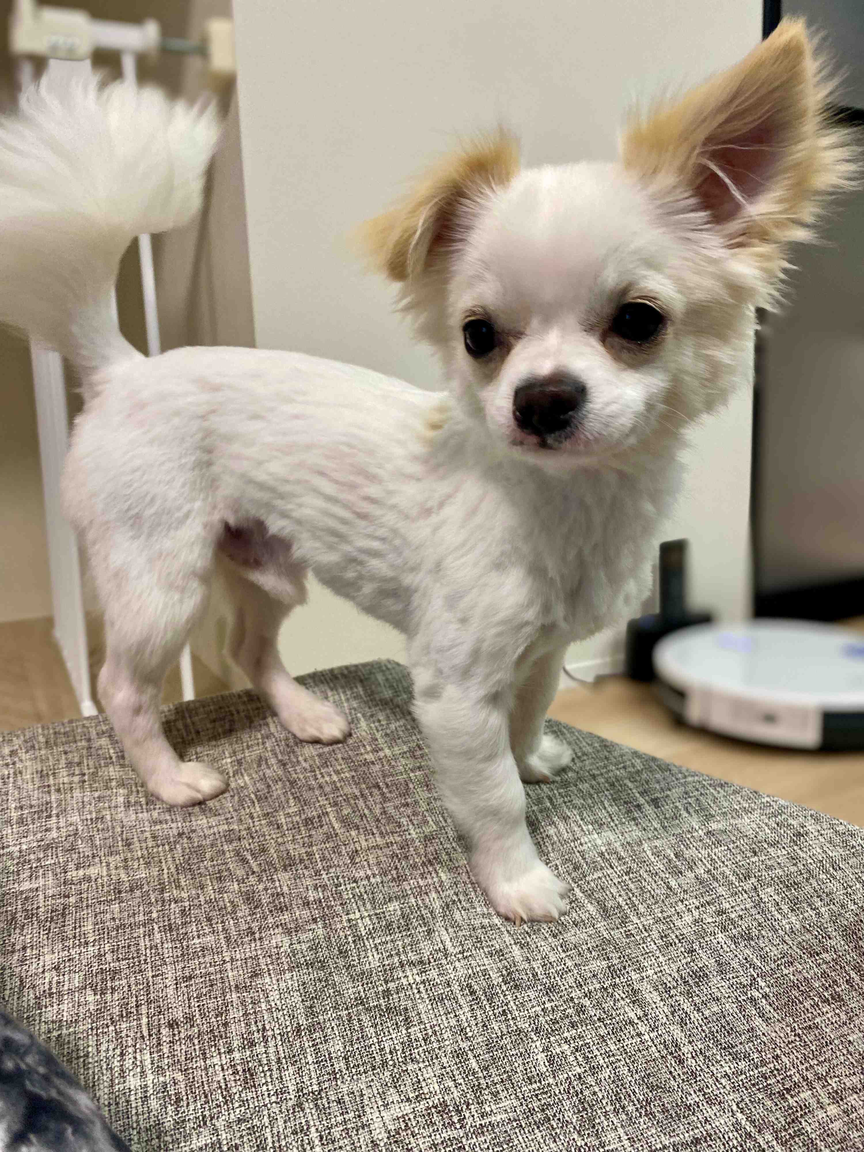 「単純に、毛が伸びてきたのでカットしようと思いました。我が家には先住犬がおり、いつもセルフカットしていたので、その感覚で切りました」