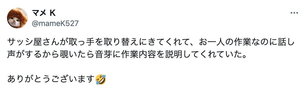 職人さんのあたたかさや優しさを感じる今回のエピソード。飼い主さんも驚きの、10万もの多くの人をほっこり和ませてくれました。意外と身近にある「優しい世界」を、これからも見落とさずにいたいですね。
