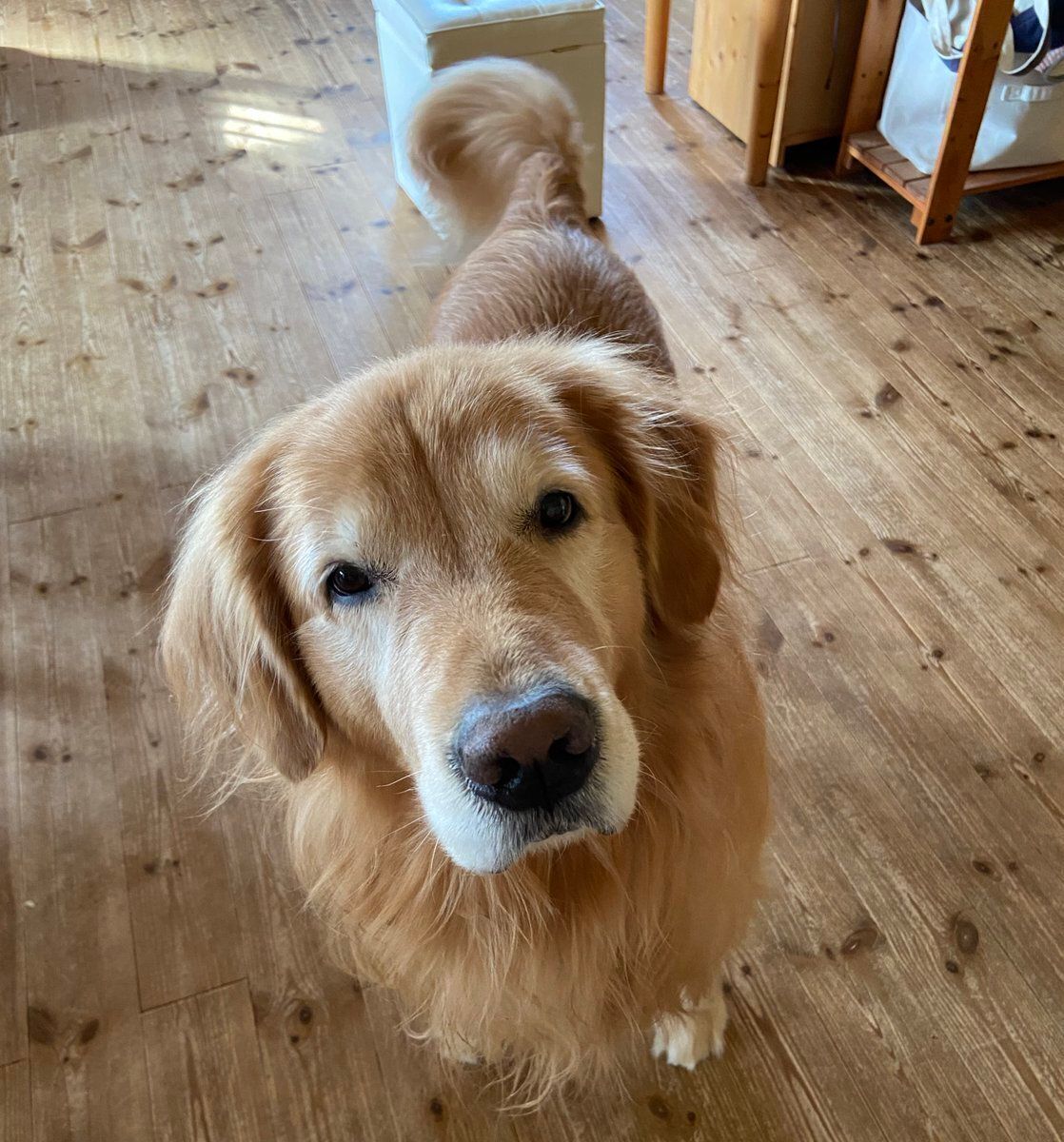 「散歩に行こうと声をかけてからあれこれと用事をこなしていましたが、ふと目が合うと、写真の顔で私の目の奥をじっと見つめてきました。まるで『散歩行くんだよね?』と疑っているみたいだったので、自分自身が『ハッ!』とさせられました」
