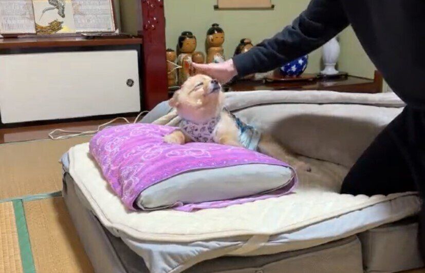 「いい子、いい子」と頭をなでてもらい、ポメくんは気持ち良さそうです。