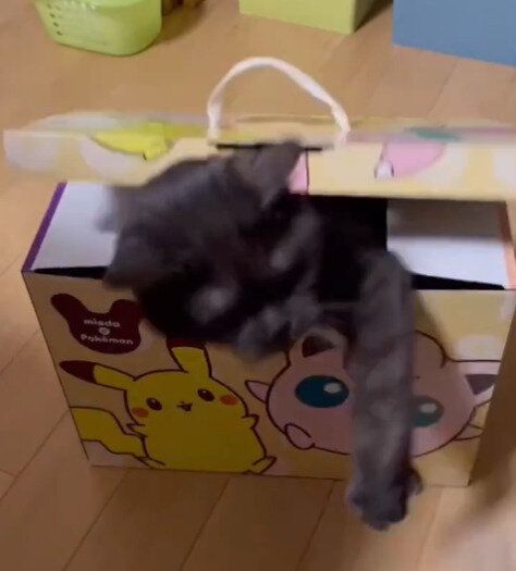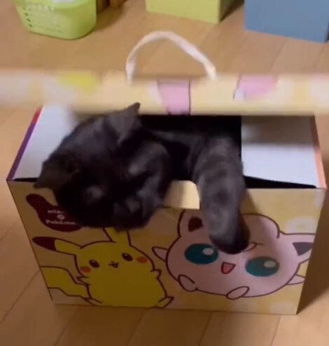 「うちの箱入り息子を見て!」飼い主さんが仕掛けた遊びにのる箱好きなツンデレ猫のパンチにキュン