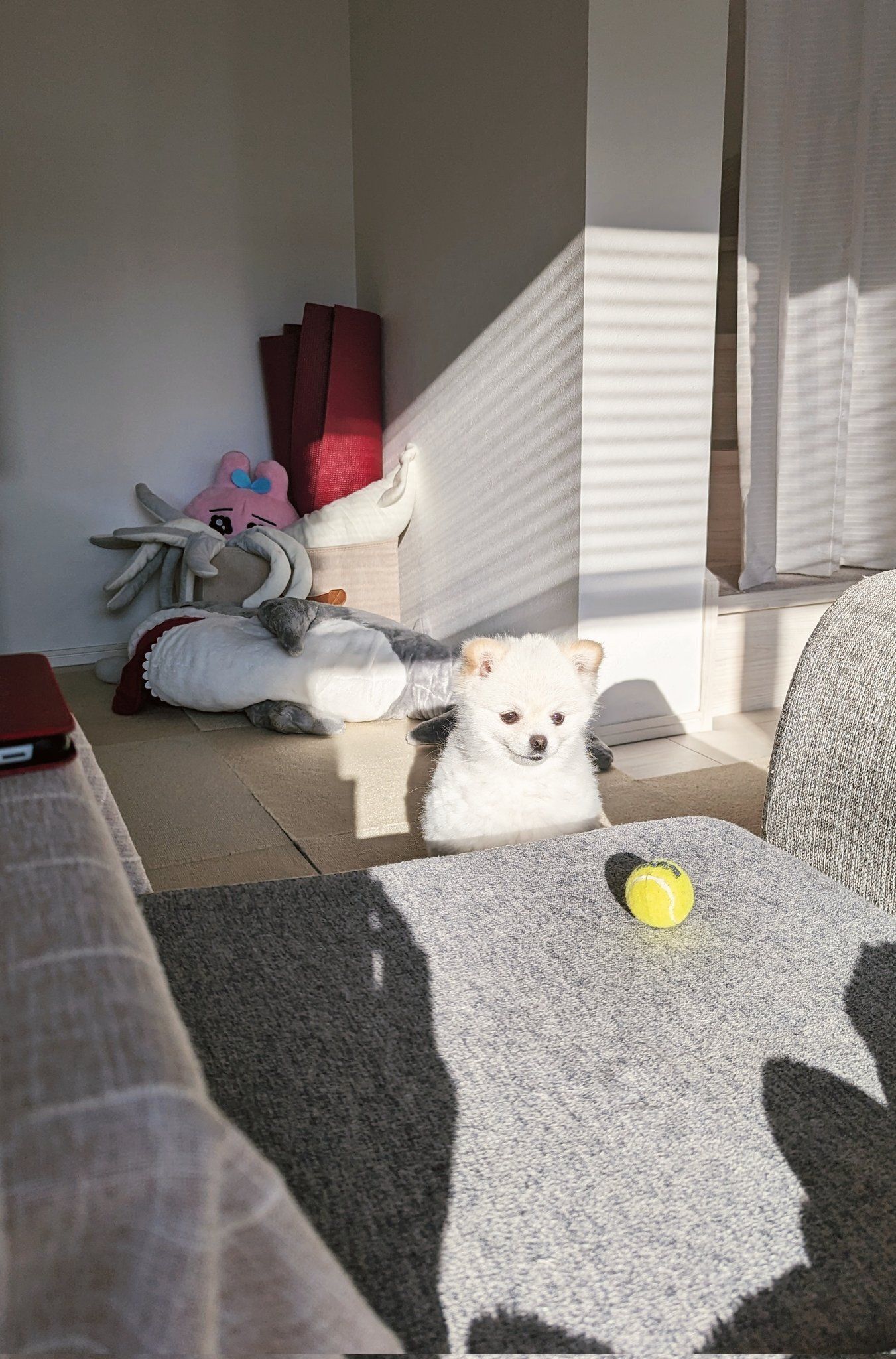 伏し目がちにじっとボールを見つめるこめたくんの表情がかわいかったです。写真を撮影したとき、実際のこめたくんはどのような様子でしたか。