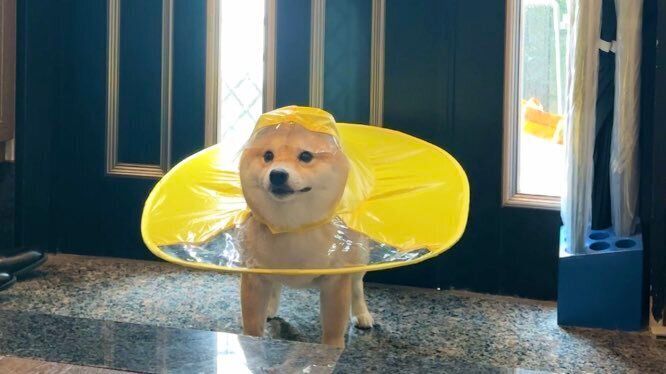 「もともと着ていく予定はなかったのですが、先に一緒に住んでいるゴールデンレトリバーのおからのお散歩に出たときに突然雨が降ってきてしまい、次に(うにくんが)お散歩に出るにはレインコートを着ることになってしまいました」