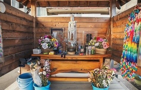 ▲町では死者・行方不明者合わせ1284名が犠牲になった。住民が役場前に建てた祭壇は祈りの場所