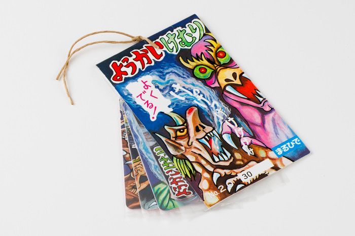 人にものるが空前絶後の妖怪ブームにものっとり、今も変わらず1枚20円のようかいけむり。指でこするとけむりが出るおもちゃで遊んだ記憶はありませんか? 製造している小林商店に取材をしても、どうしてどのようにこの製品を開発したのか不明。開発の経緯は煙と一緒に消えてしまったとか……。