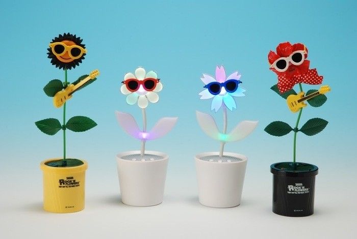 1988年に誕生したサングラスをかけたフラワー、それがフラワーロック。懐かしいですよね。真ん中の2体は2008年にリバイバルとして音楽に合わせて踊る、フラワーロック2.0。大人が楽しめるおもちゃの先駆け的存在として世の中を騒がせました。