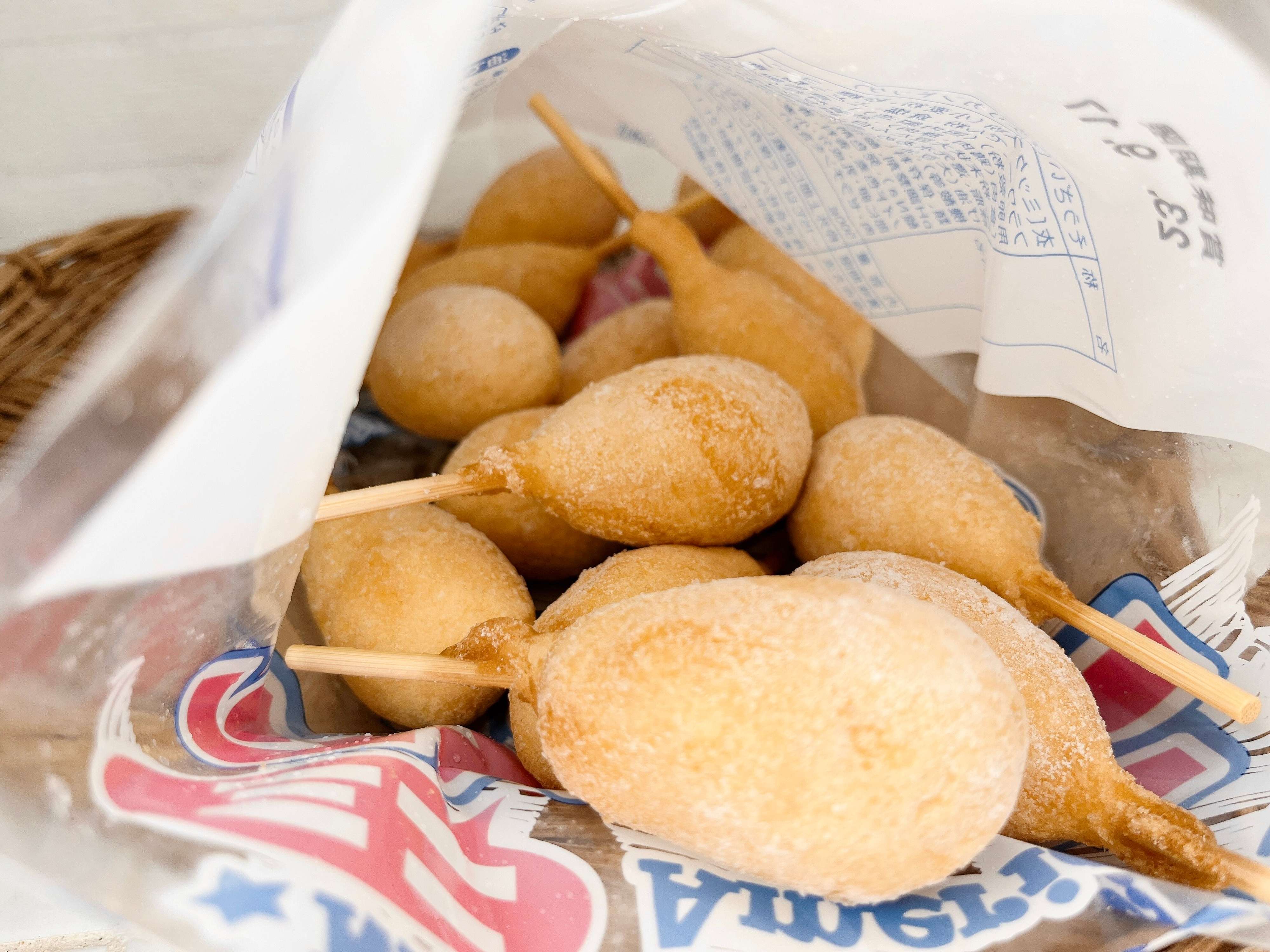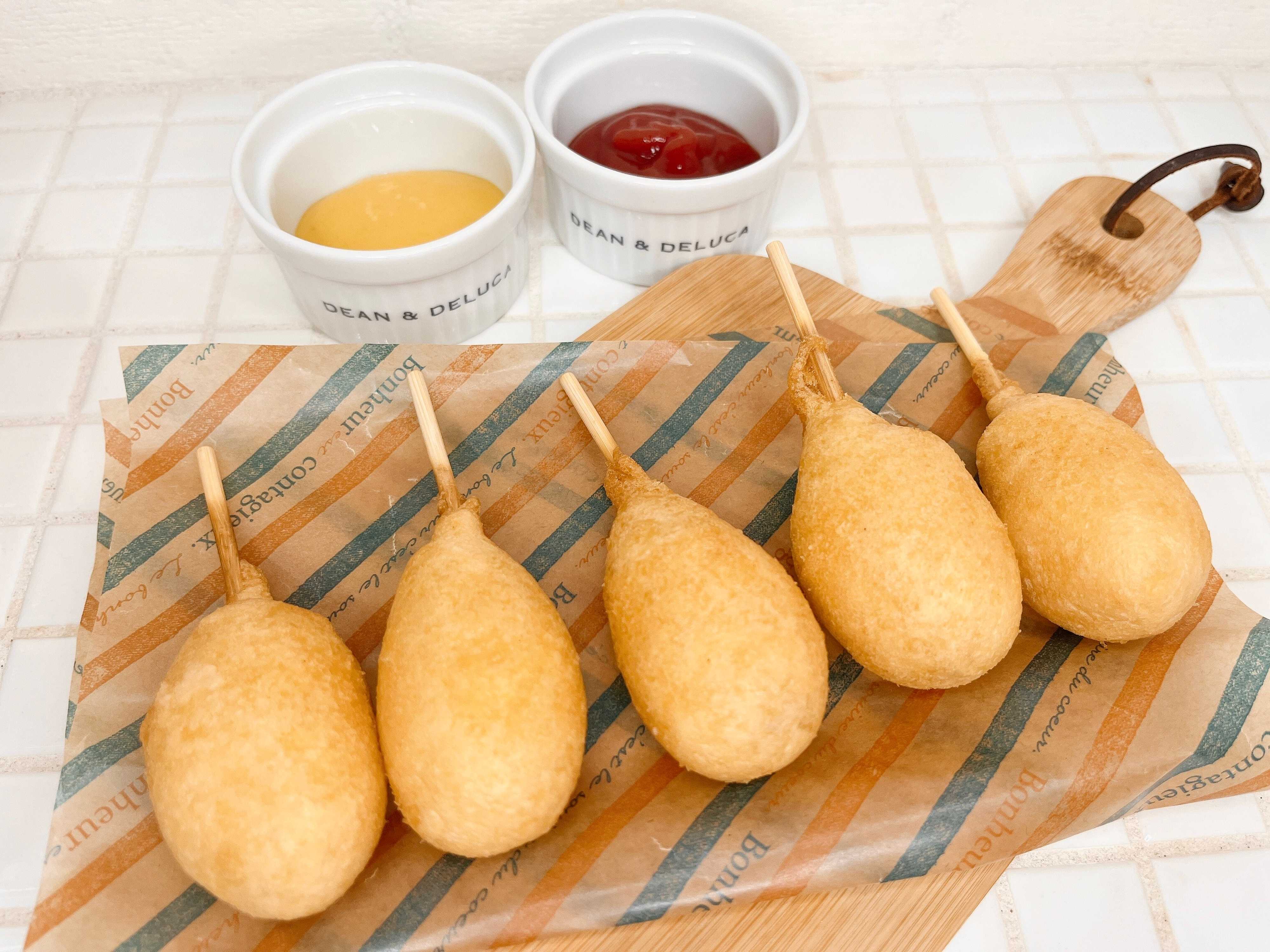 通常のアメリカンドッグの半分以下のサイズなので、小さいお子さんでも食べやすいと思います!