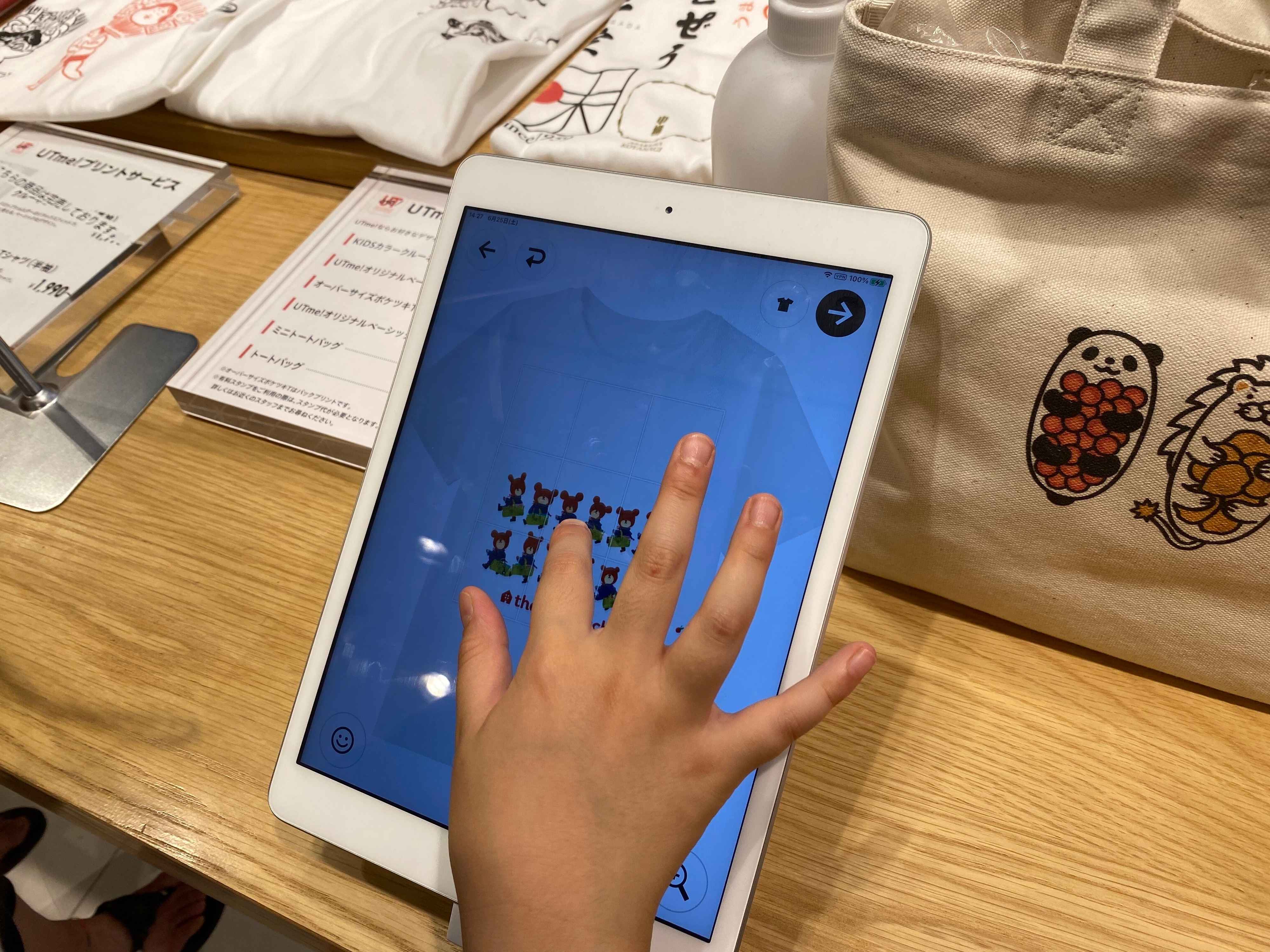 そちらのタブレットから、プリンタしたいお洋服などを選択しデザインを作っていきます。