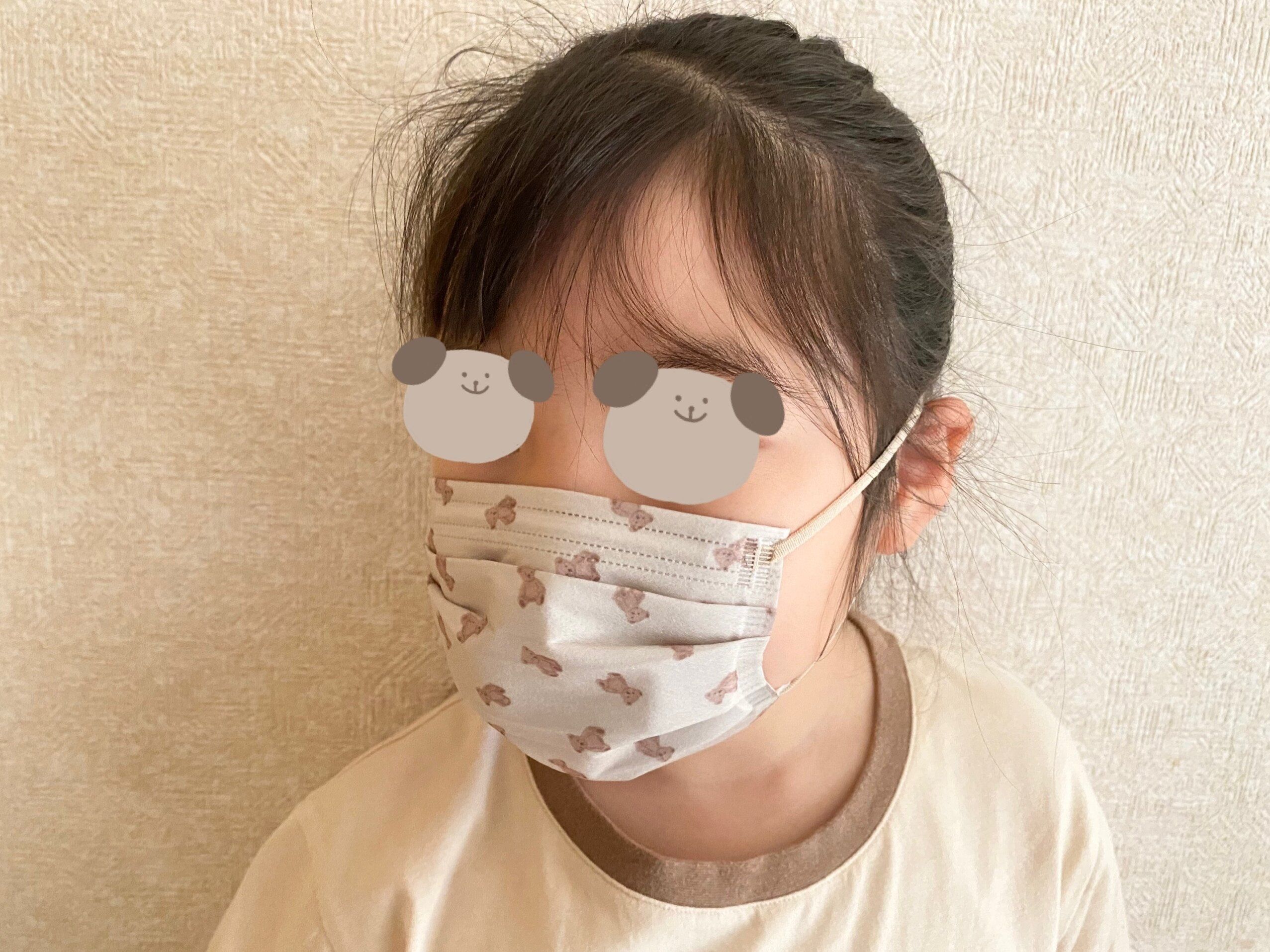 こちらの写真で付けているのは、くまの柄のマスクです。