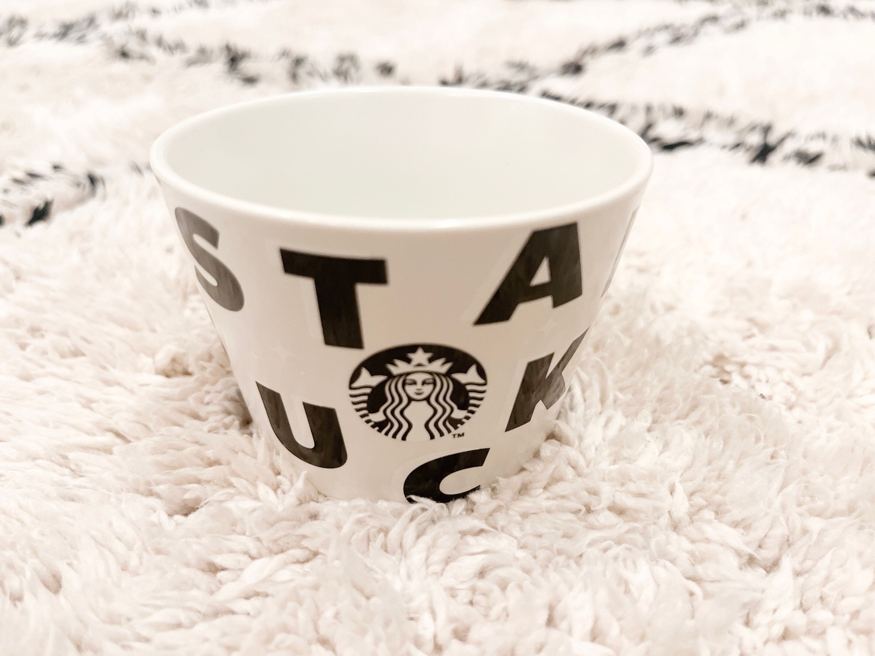販売前から、白ベースにSTARBUCKSの文字が入ったモダンなデザインのこちらがどうしても欲しかったので、発売日当日朝8時に購入しに行きゲット!