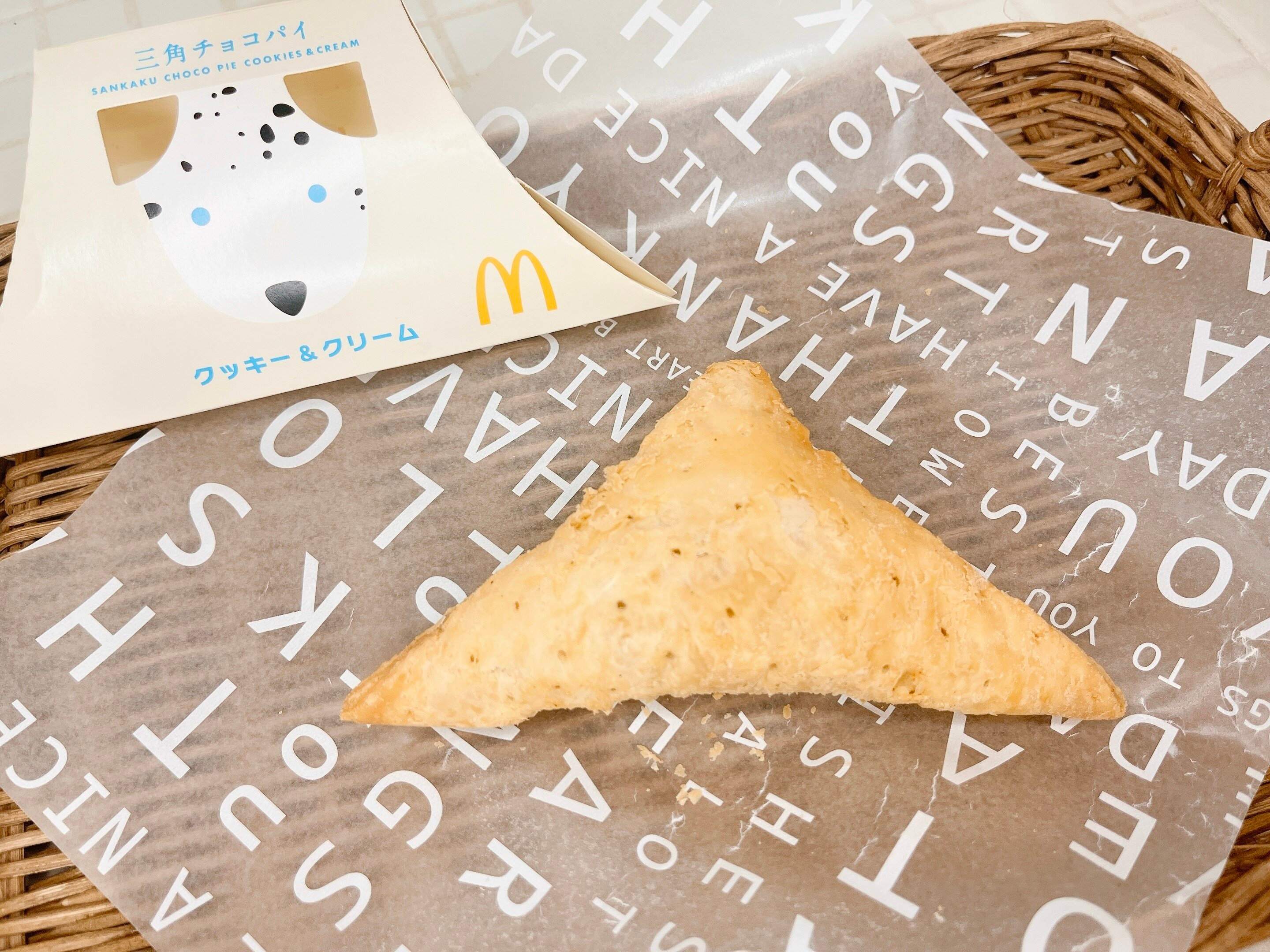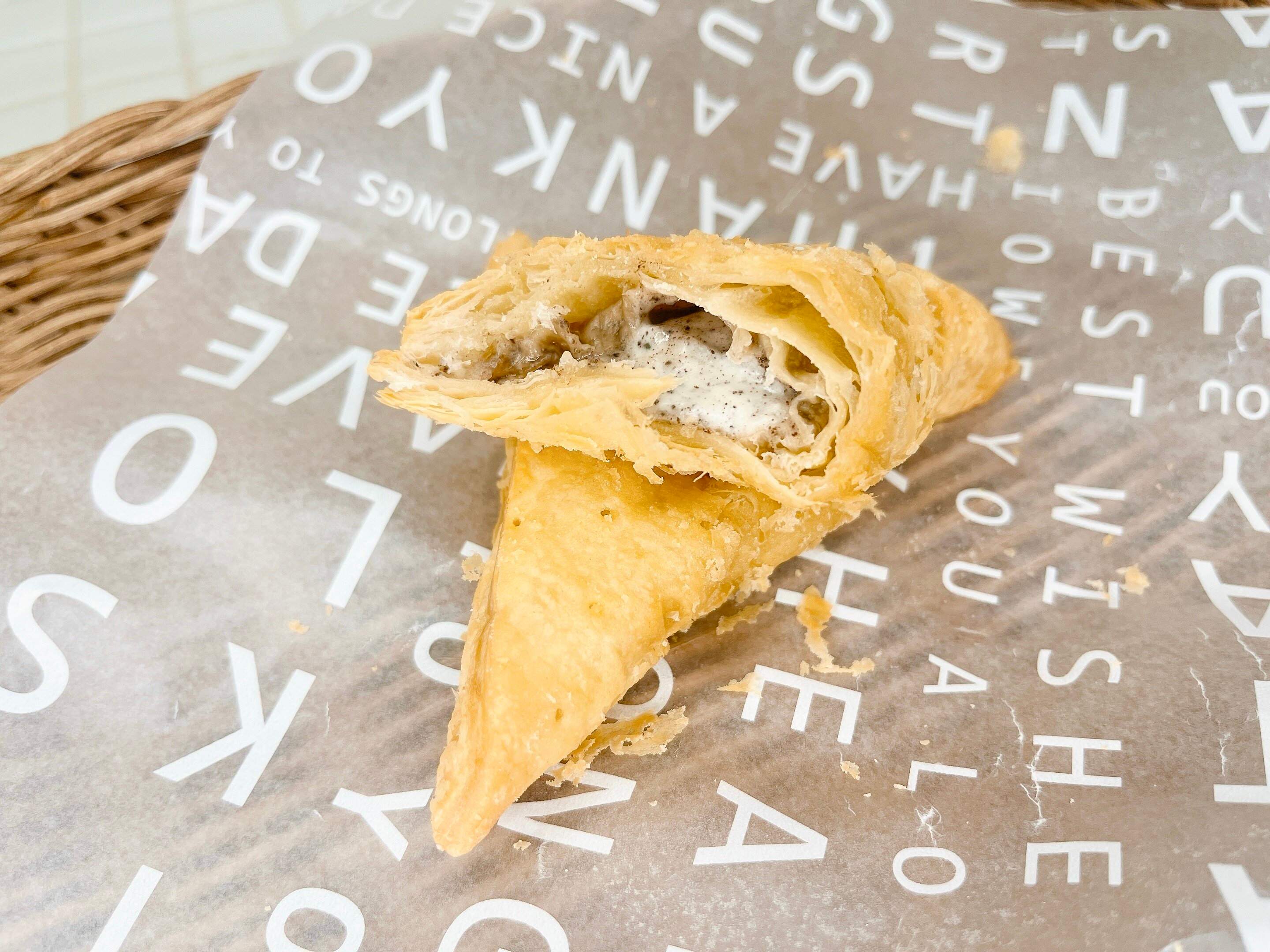 2019年はパイ生地はココア風味でしたが、今回はホワイトチョコが練りこ込まれたパイ生地が何層にも重なっていて、サクサクです!中身のバニラクリームに含まれる「オレオクッキー」は30%増量になりザクザク感アップになっています。熱々の状態で食べたのでクリームはとろ~りでとっても美味しいです!