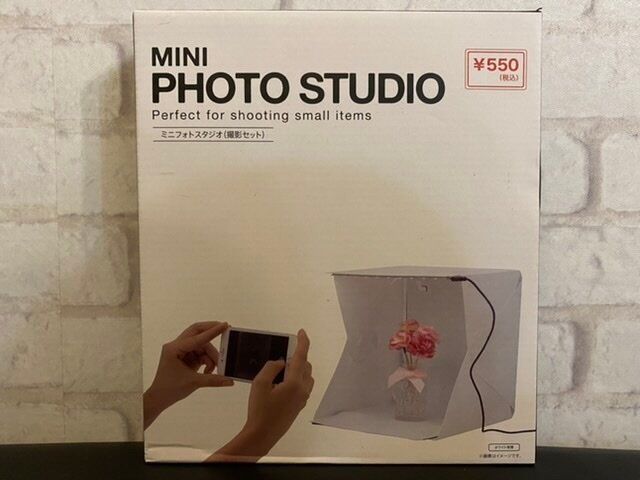 私はハンドメイド作品を販売しているのでハンドメイド作品の写真を撮ったり、メルカリに販売する物を写真撮ったりすることが多いのですが、影が入ってしまったり暗くなってしまったり、背景がごちゃごちゃしてしまったりしてしまっていたので簡易的なミニフォトスタジオを購入しようかと検討中だったのですが、たまたま行ったキャンドゥになんと550円でミニフォトスタジオが販売していたのでご紹介します♪