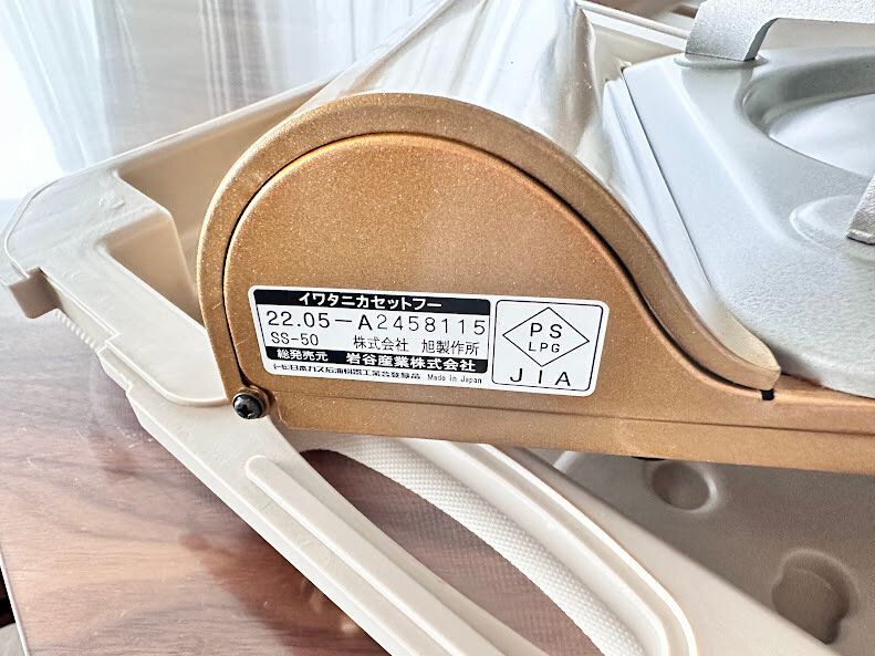 カセットコンロの製造年月は、本体に貼ってあるシールで確認することができるので(このカセットコンロは2022年5月に製造されたものです)確認してみてください。使用期限が間近の方は買い替えを検討してくださいね。