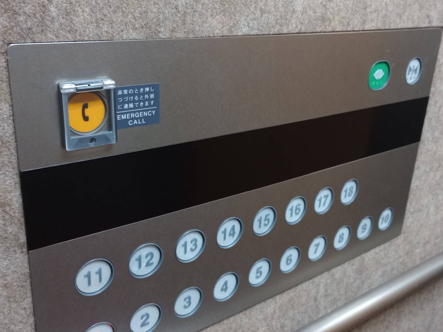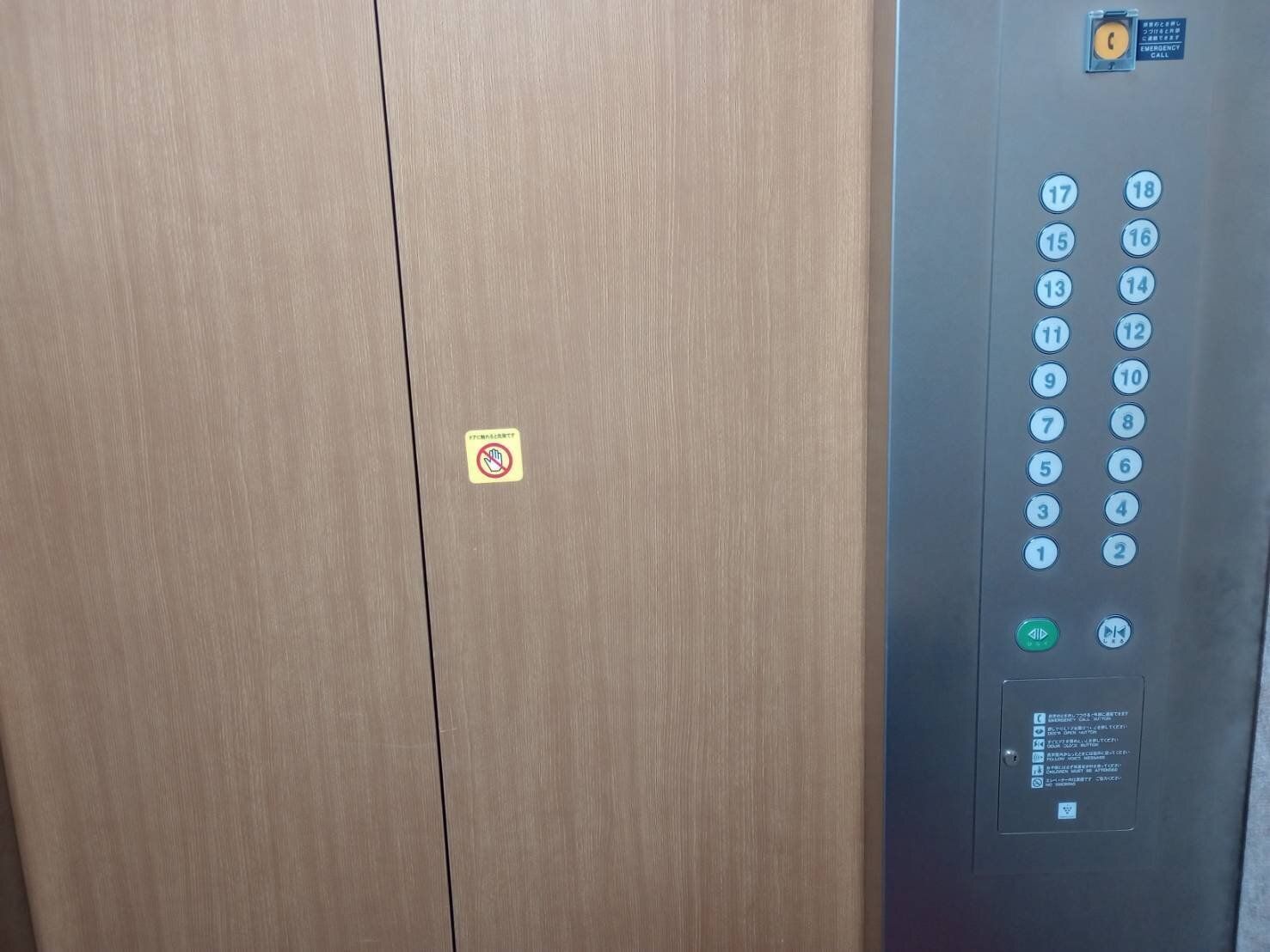 最近のエレベーターは、緊急時に管理センターに直通で連絡できる非常呼び出しボタンが設置されているものがほとんど。
