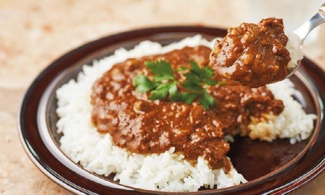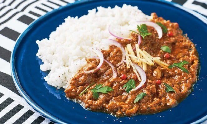 「行列必至の鎌倉の名店・珊瑚礁の味がいつでも家で食べられるなんて最高。ひき肉と、こくのある生クリームとカレーソースで作っているので、クリーミーかつスパイシーな味わい」。