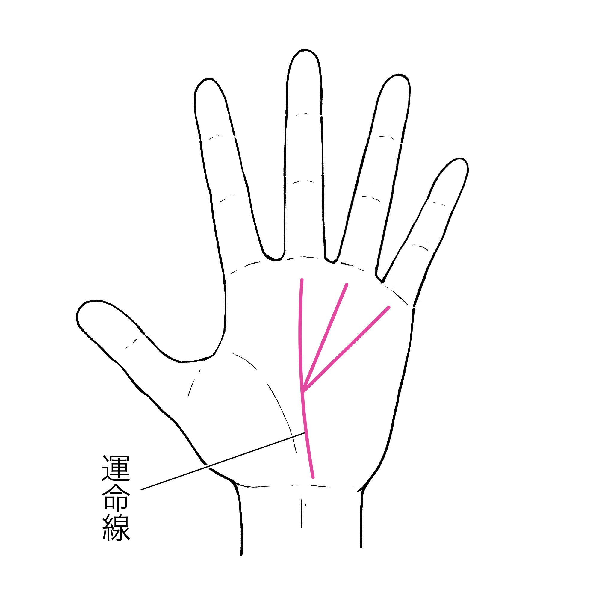 真っ直ぐな運命線を持っている人は、自分で道を切り開くことができます。自分の哲学や信念に従って突き進むことで仕事運が上がり、結果お金がついてくるというタイプ。何か起きても「大丈夫!」「なんとかなる!」と前向きに考えて進んで行くことができます。