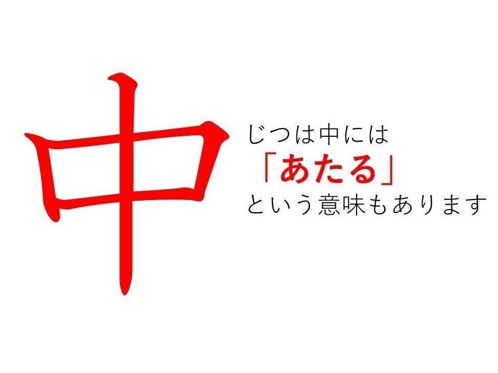 ちなみに、「的中」という言葉もこの「あたる」の意味で使われています。