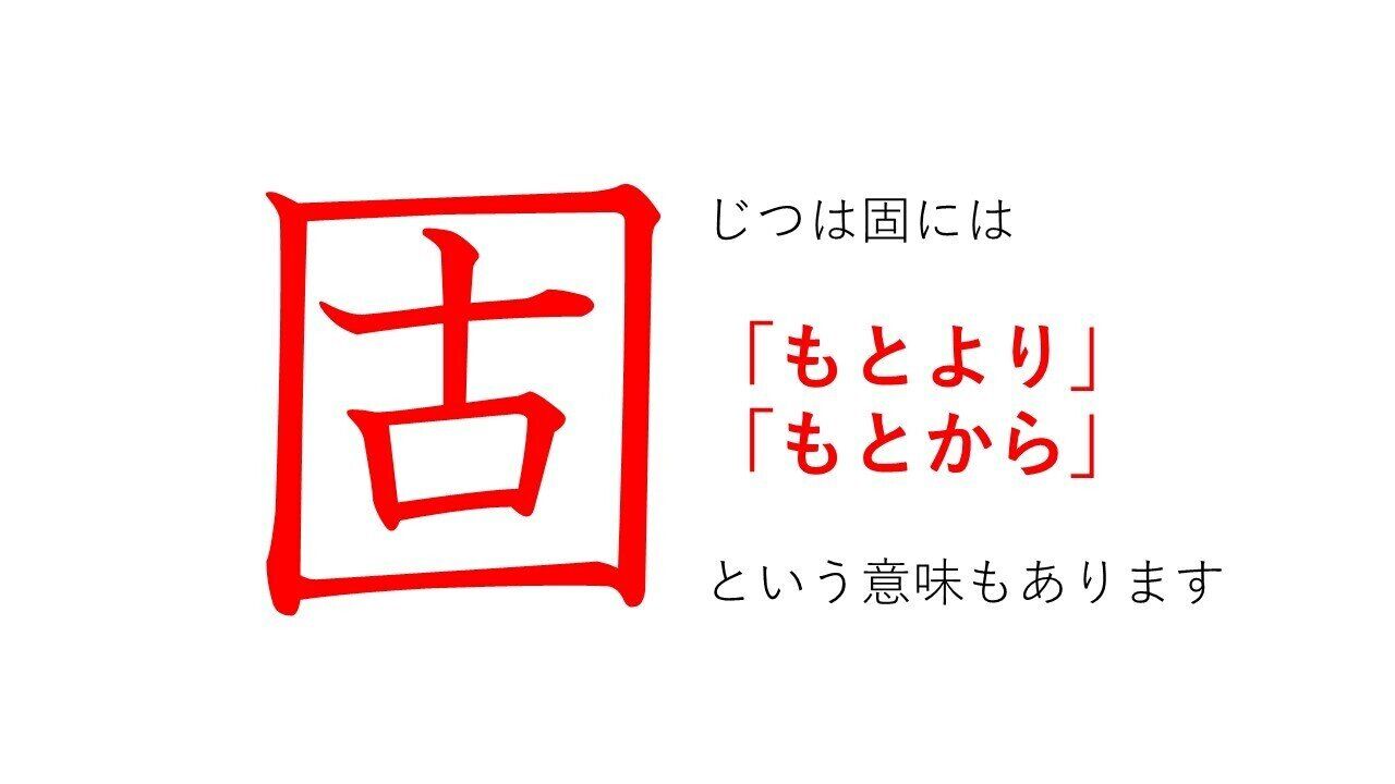「固」という漢字には、「くにがまえ」と呼ばれる四角い囲いのような部分がありますね。