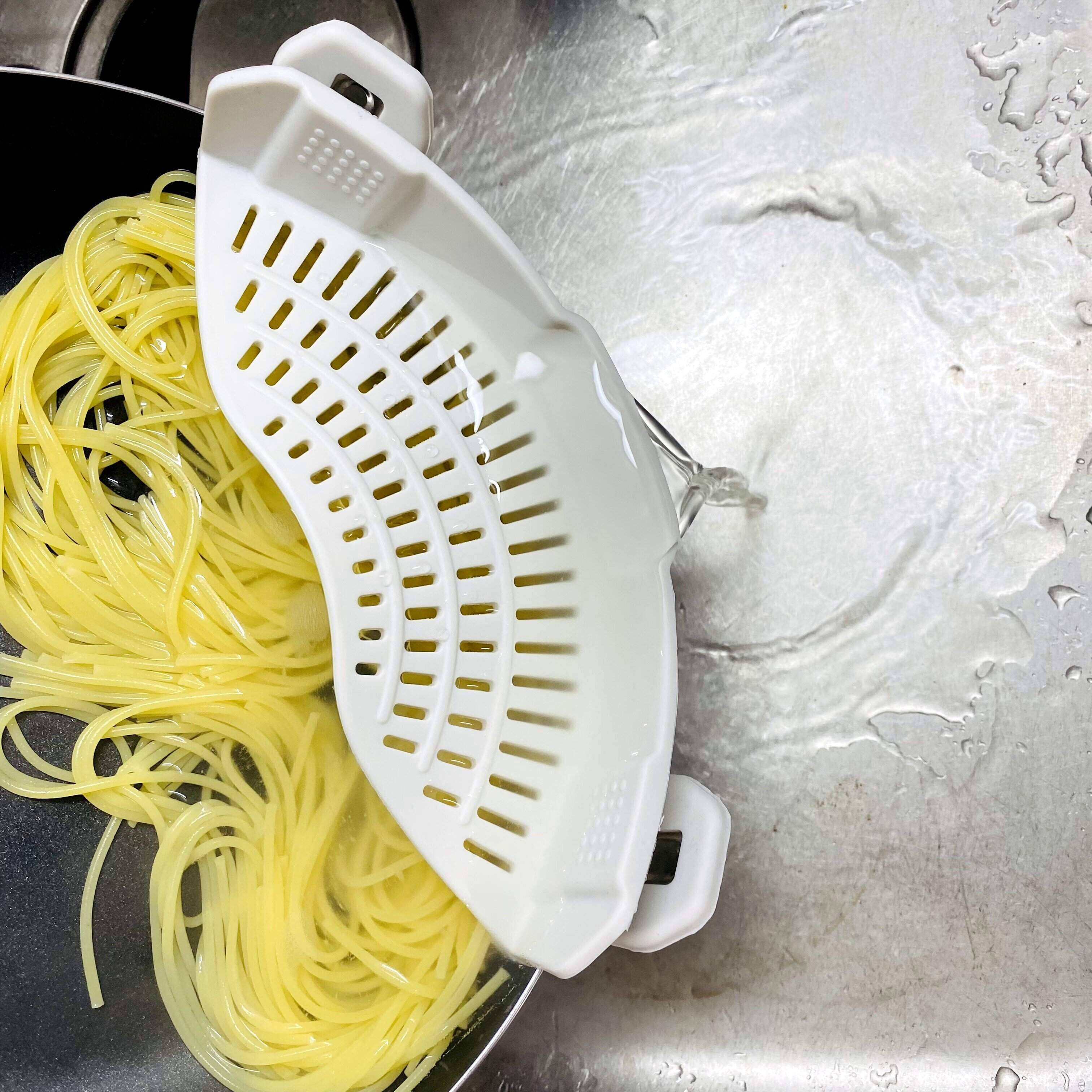 鍋やフライパンにクリップで留めて使うザル。コンパクトで収納も省スペース◎。