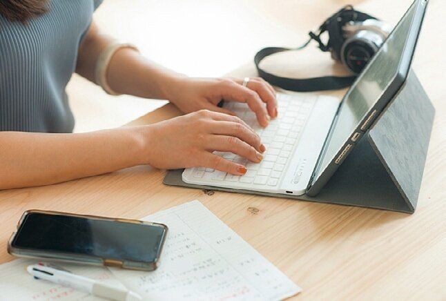 2児の母である海老原さん。家事や子育てのすき間時間をムダにせず原稿を書くために、スマホとタブレットを活用。スマホのメモアプリに書きためた文章をタブレットと同期し、原稿を仕上げます。