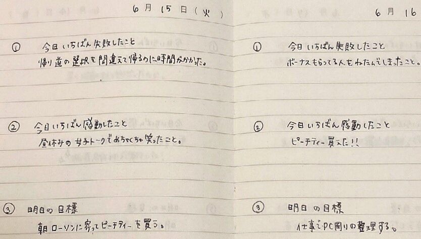うれしかったこと、よかったことなど。なるべく短く、実感のこもった言葉で書いたほうが、より自律神経を整える効果がUP!